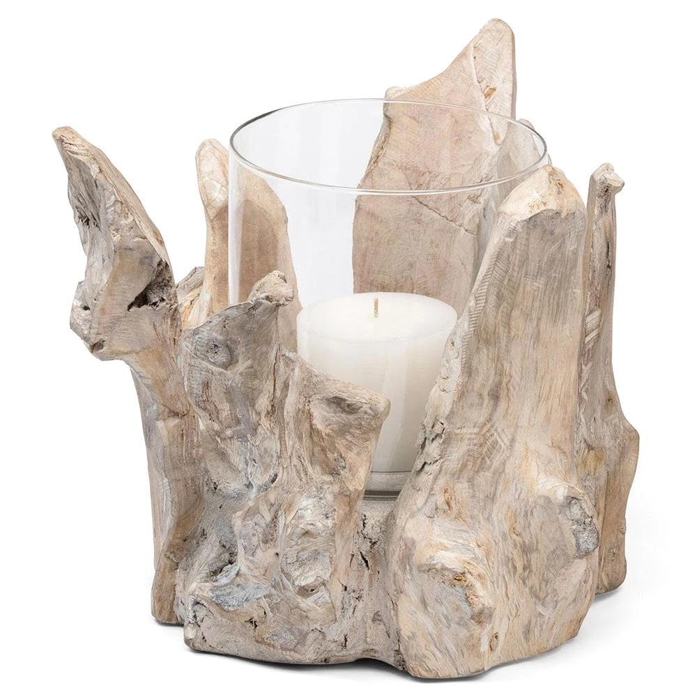 Pigeon and Poodle Maringa Coastal Beach Driftwood Hurricane Candle Holder - Small