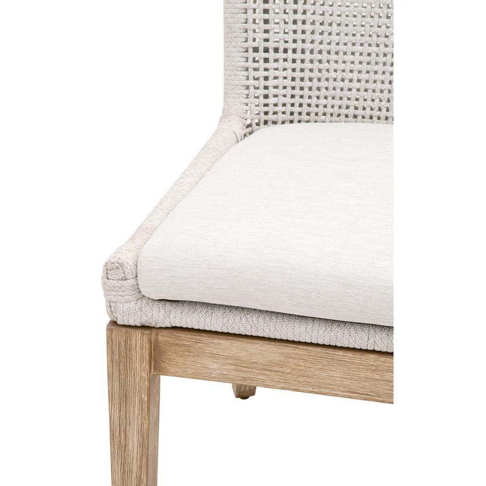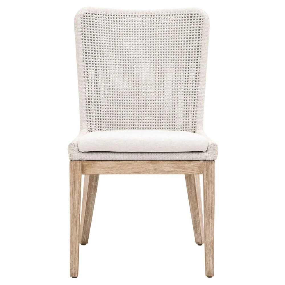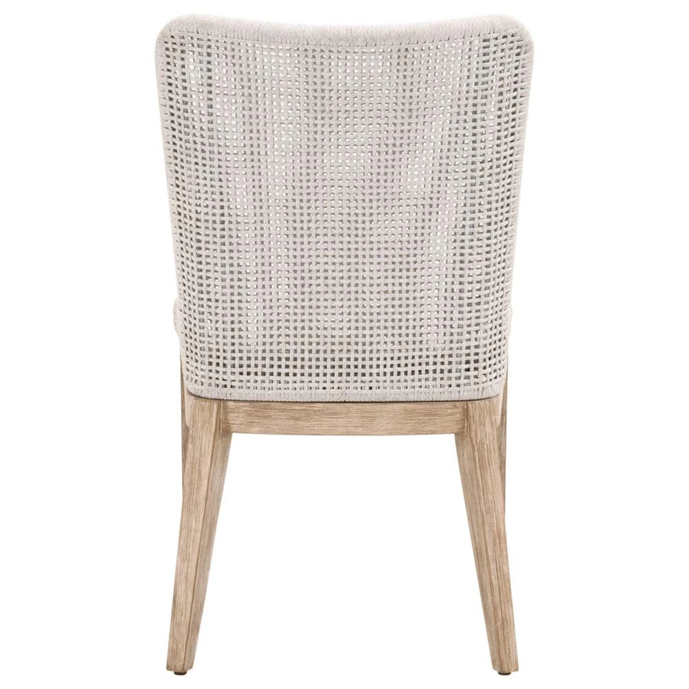 Kailey Coastal Beach White Performance Woven Rope Mahogany Frame Dining Side Chair - Set of 2