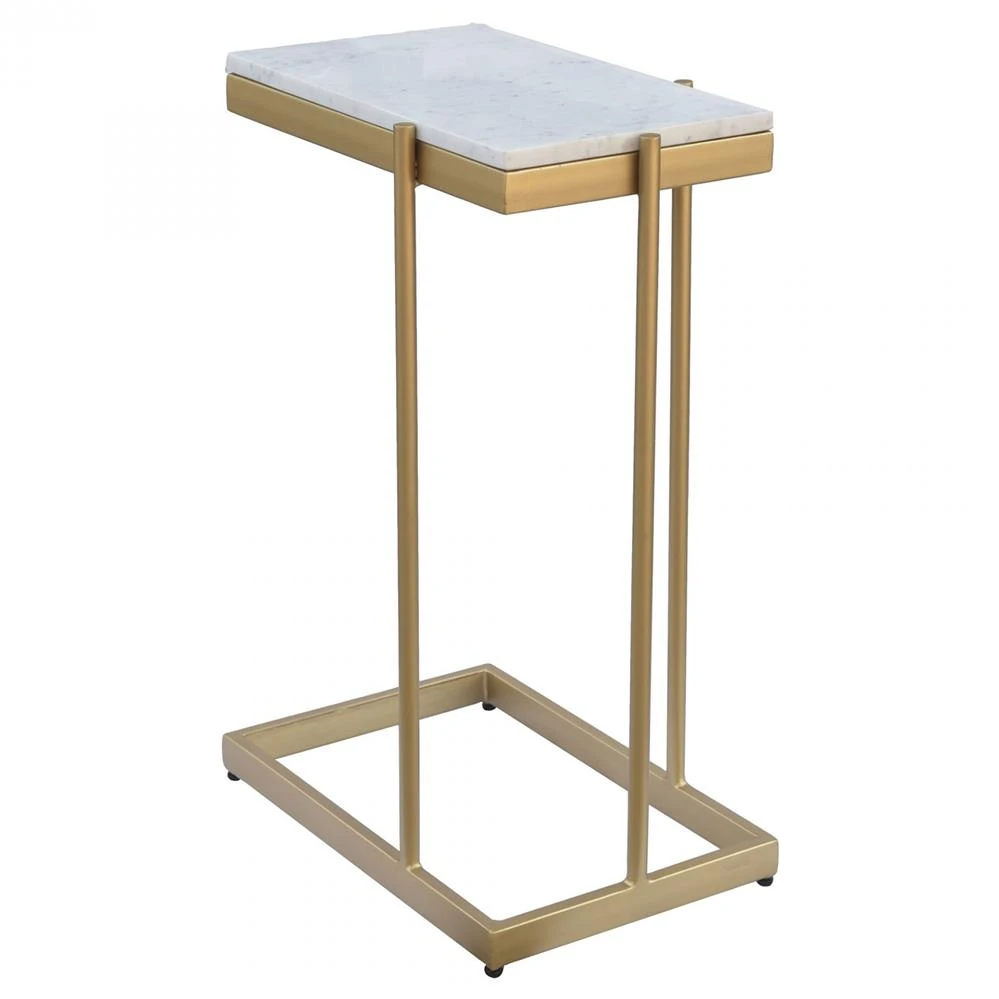 Amirah Hollywood Regency White Marble Top Gold Iron Rectangular C Side Table Image 1