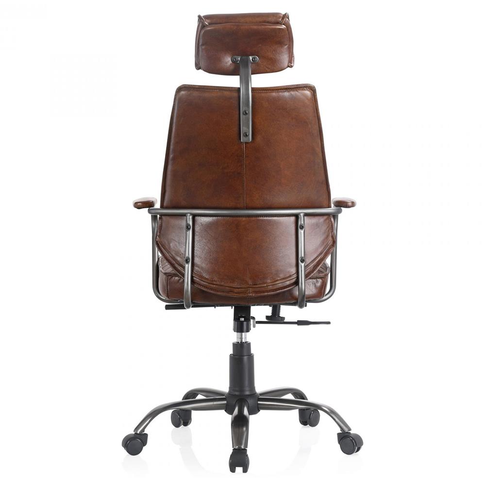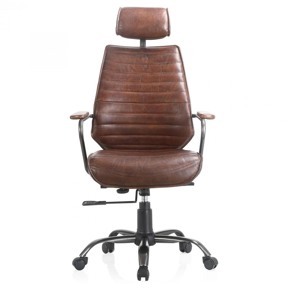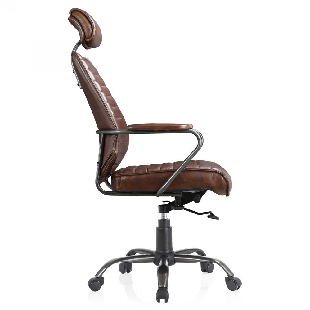 Reid Industrial Tufted Brown Upholstered Silver Iron Adjustable Office Chair
