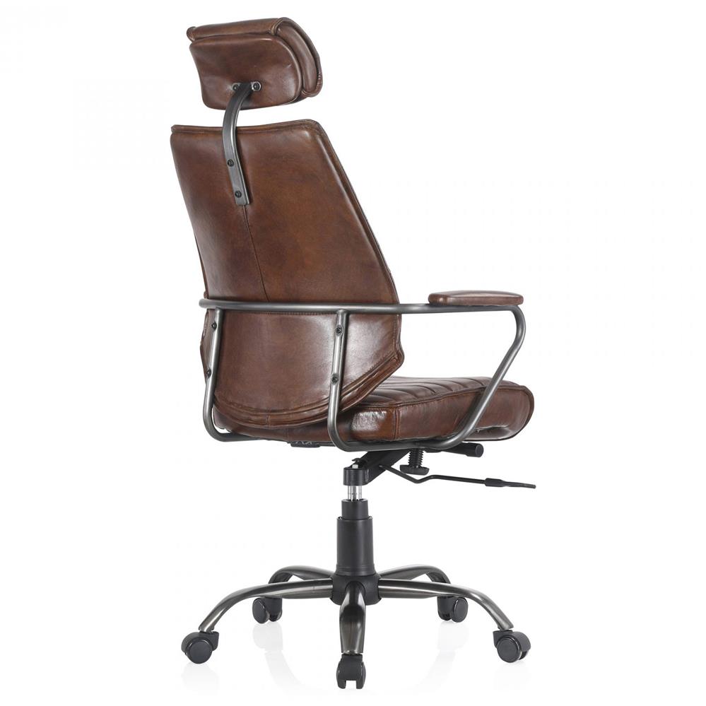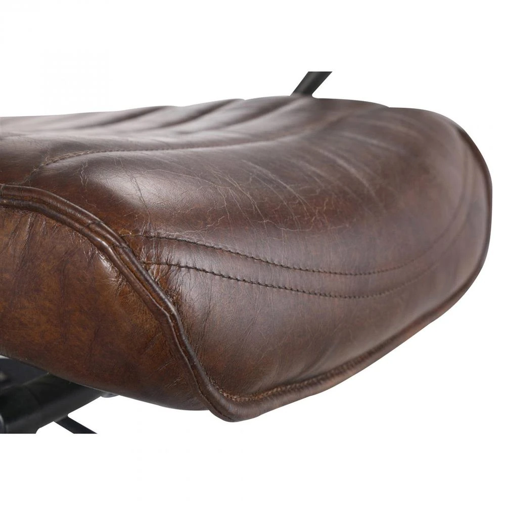 Alexander Rustic Brown Upholstered Leather Metal Base Nailhead Swivel Office Chair