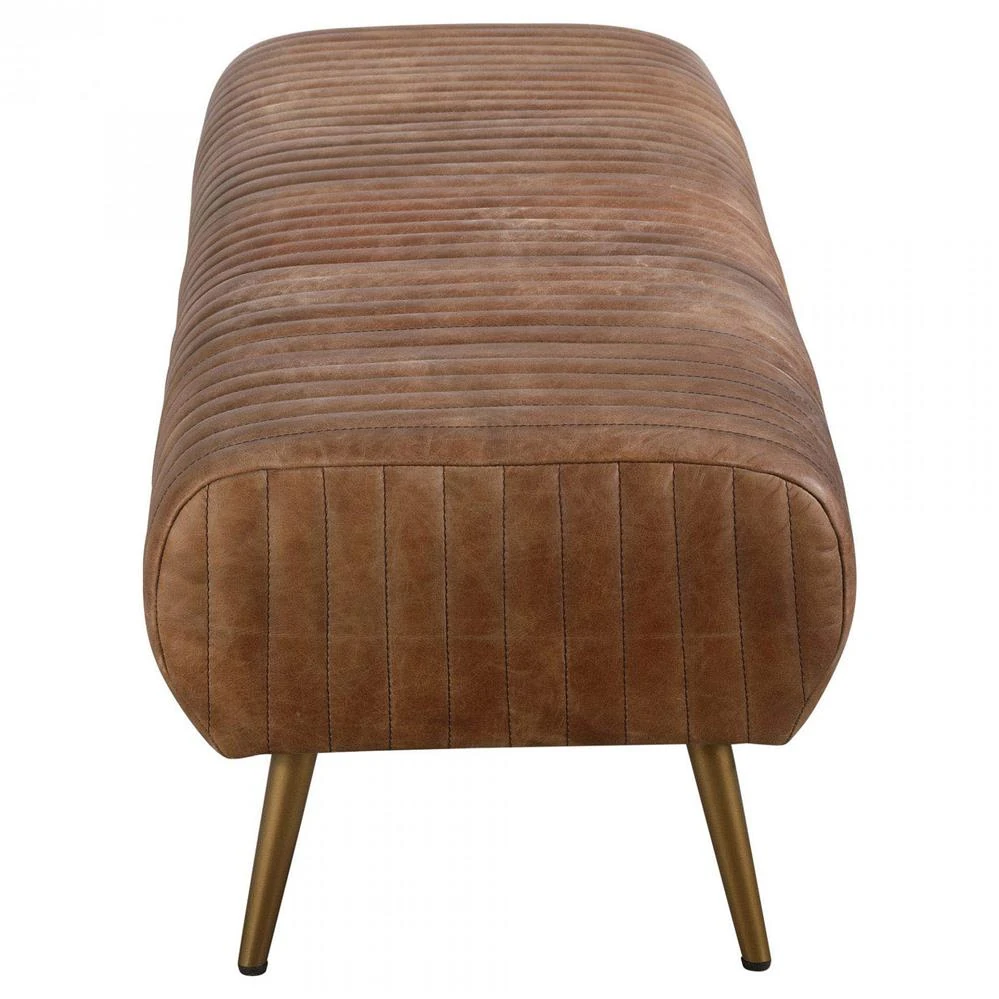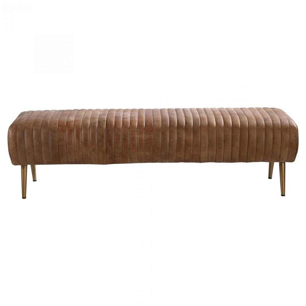 Dominick Regency Brown Upholstered Leather Gold Iron Entryway Bench