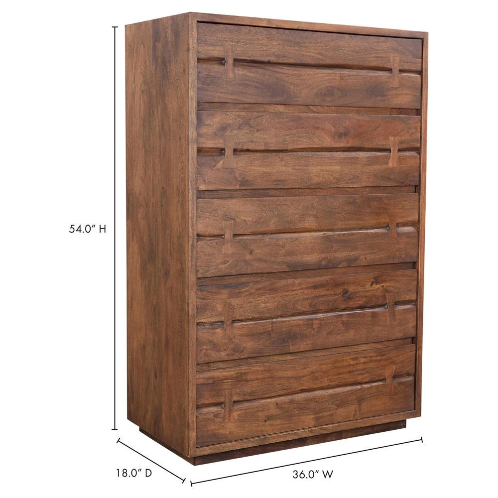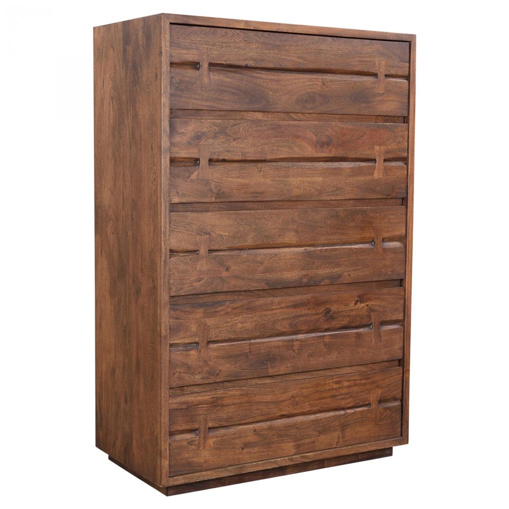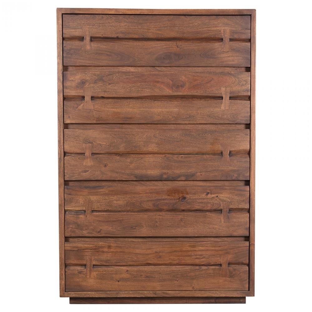 Atlas Rustic Lodge Brown Acacia Wood 5 Drawer Tall Chest Dresser