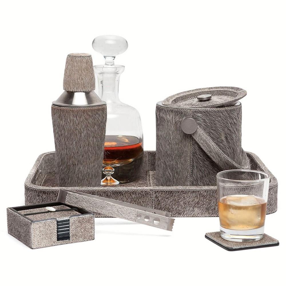 Browmley Rustic Lodge White Hair on Hide Ice Bucket with Tong