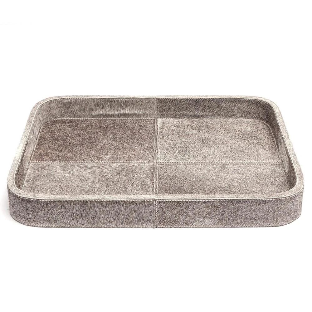 Browmley Rustic Lodge Grey Hair on Hide Rectangular Tray