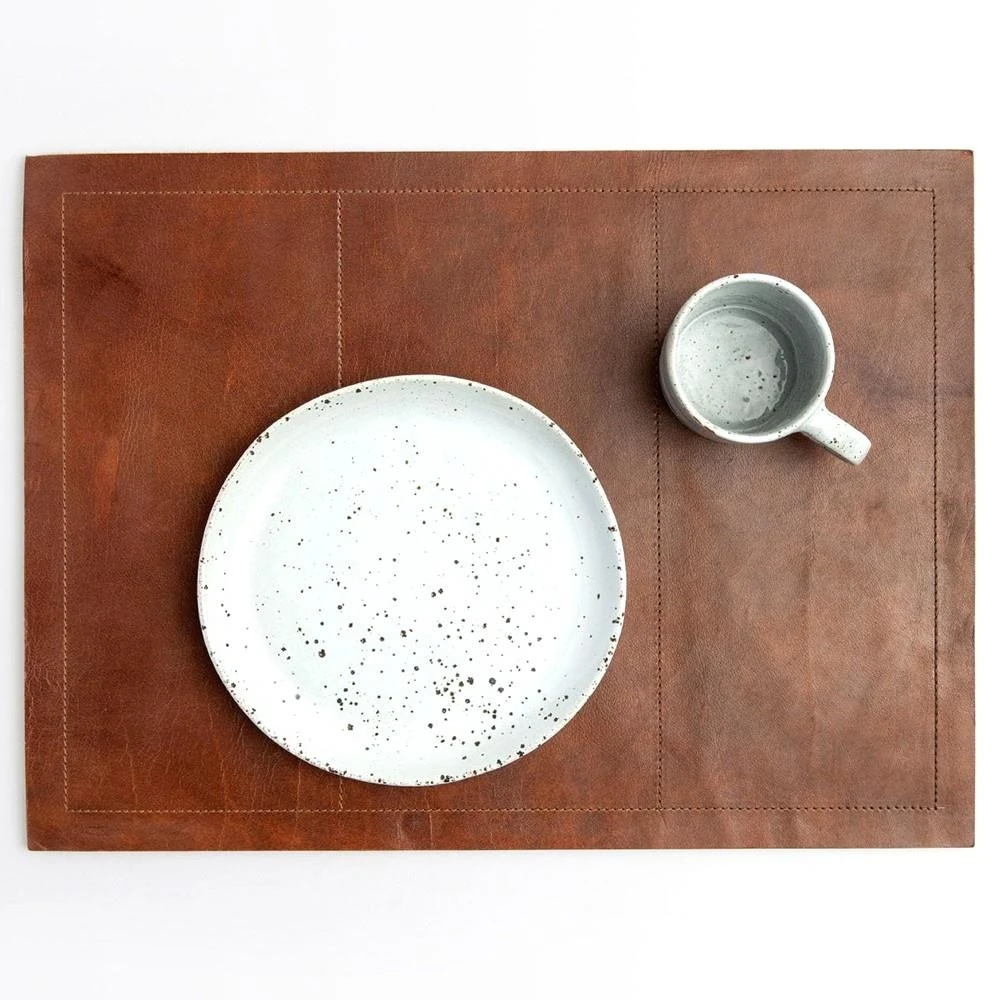 • Tanner Rustic Brown Hide Round Placemat - Set of 2|Kathy Kuo Home