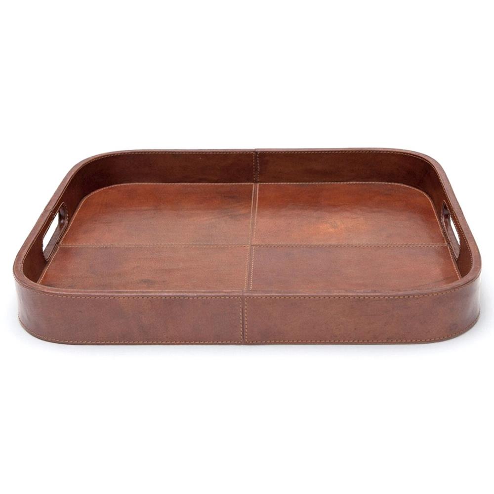 Livia Updated Traditional Brown Leather Serving Tray - Small