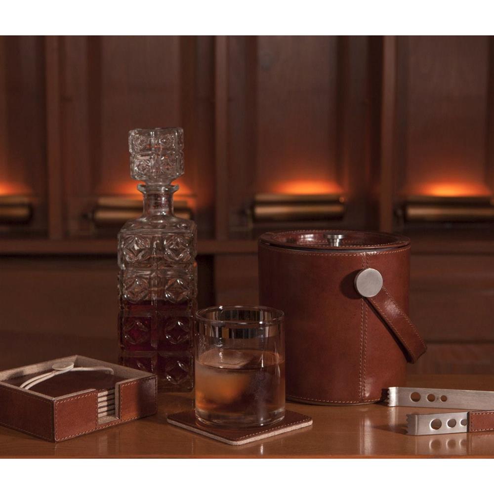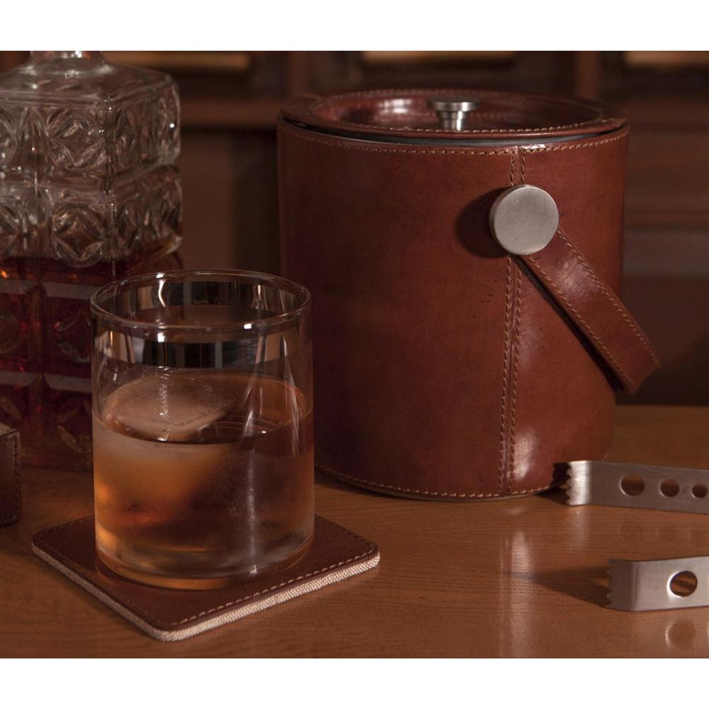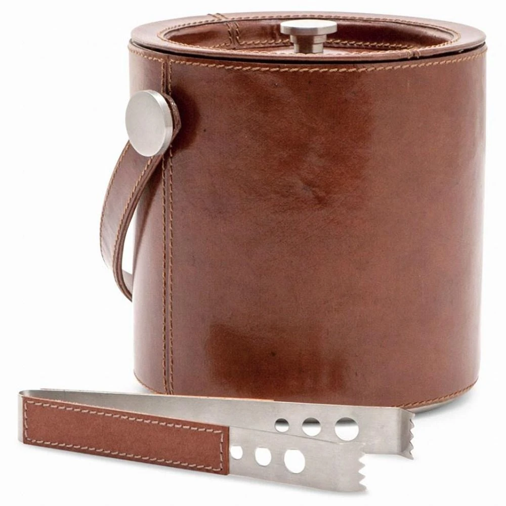 Bristol Rustic Lodge Brown Leather Ice Bucket with Tong