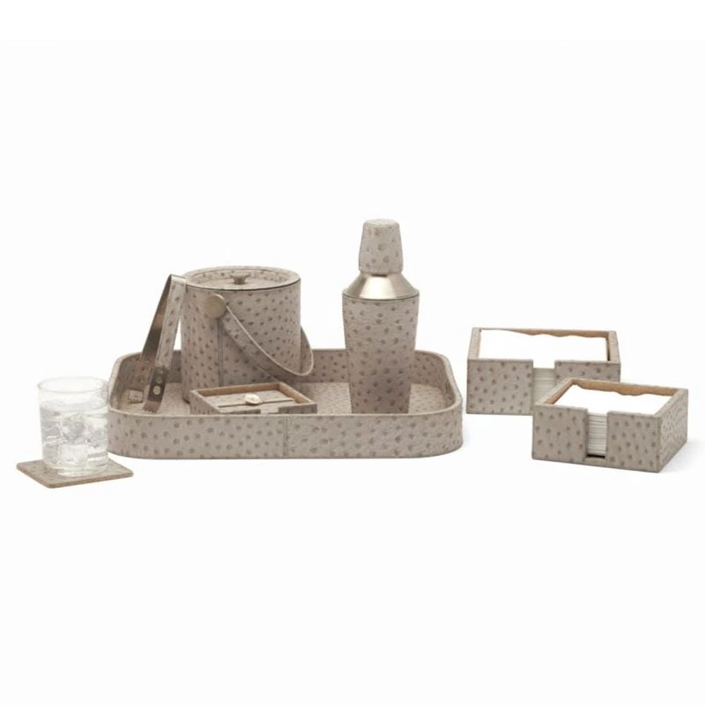 AERIN Updated Traditional Cream Embossed Shagreen Bar Tool Set