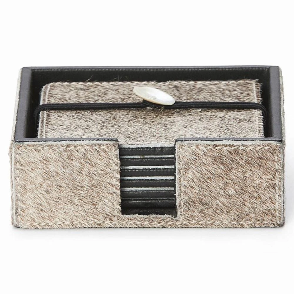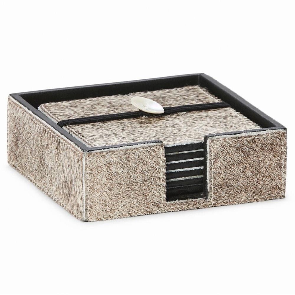 Browmley Rustic Lodge Grey Hair on Hide Coaster - Set of 6