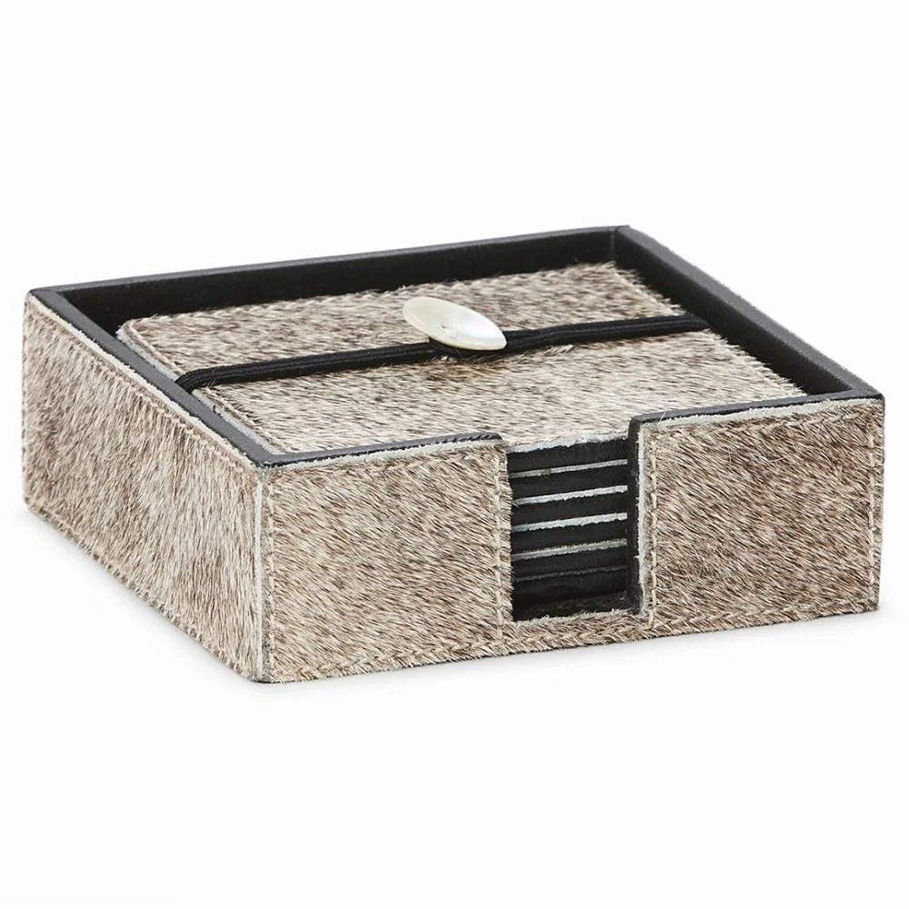Browmley Rustic Lodge Beige Hair on Hide Coaster - Set of 6