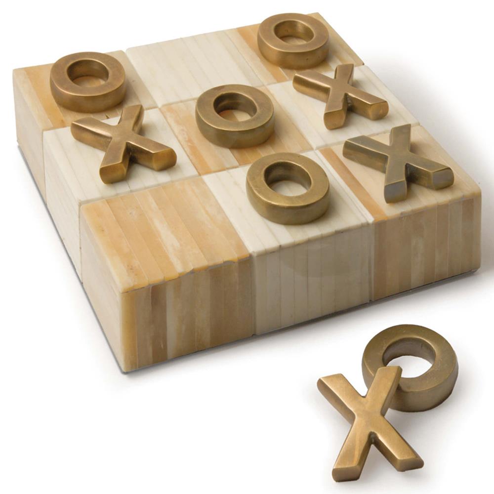 • Tic Tac Toe Modern Classic Natural White Bone Block Game Set|Kathy Kuo Home