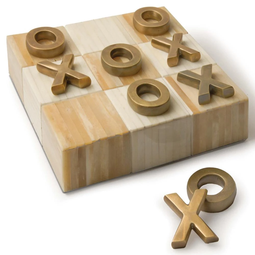 • Has brass X's and O's pieces
