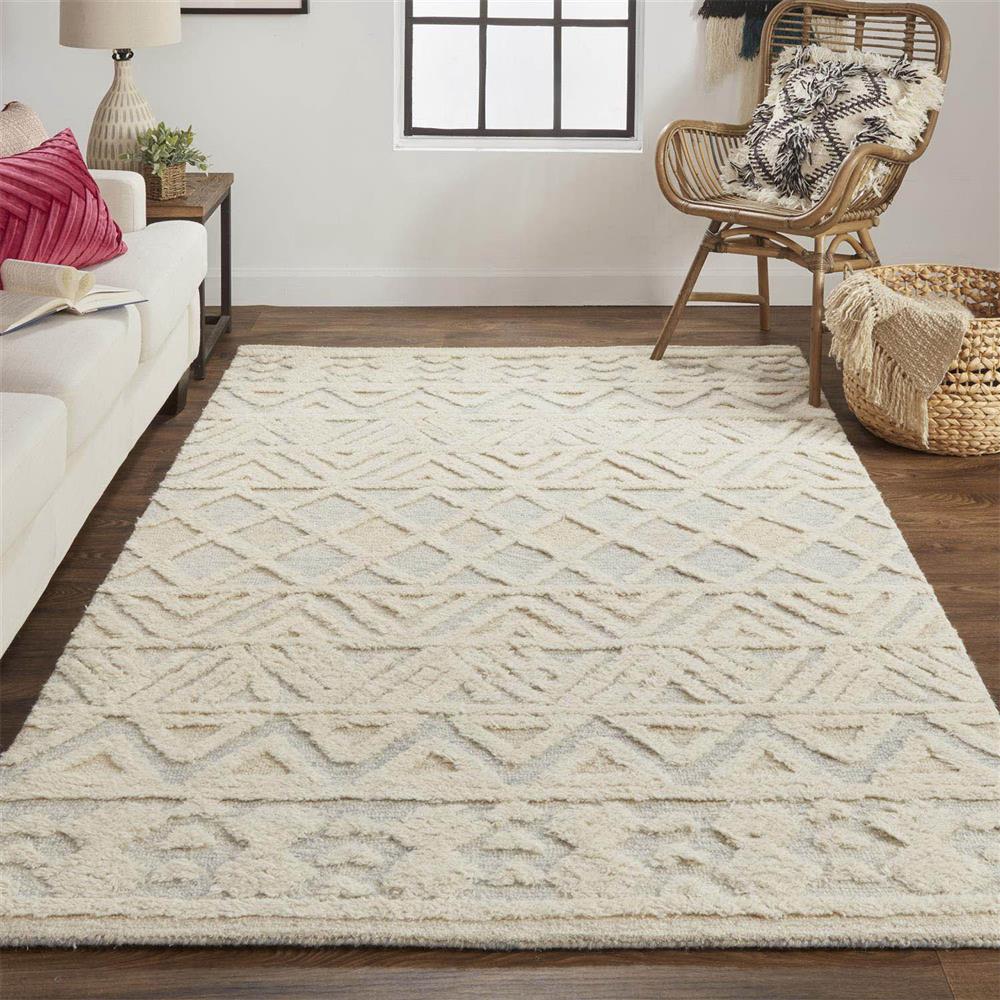 Atarah Modern Classic Cream Wool Geometric Patterned Rug - 4'x6'
