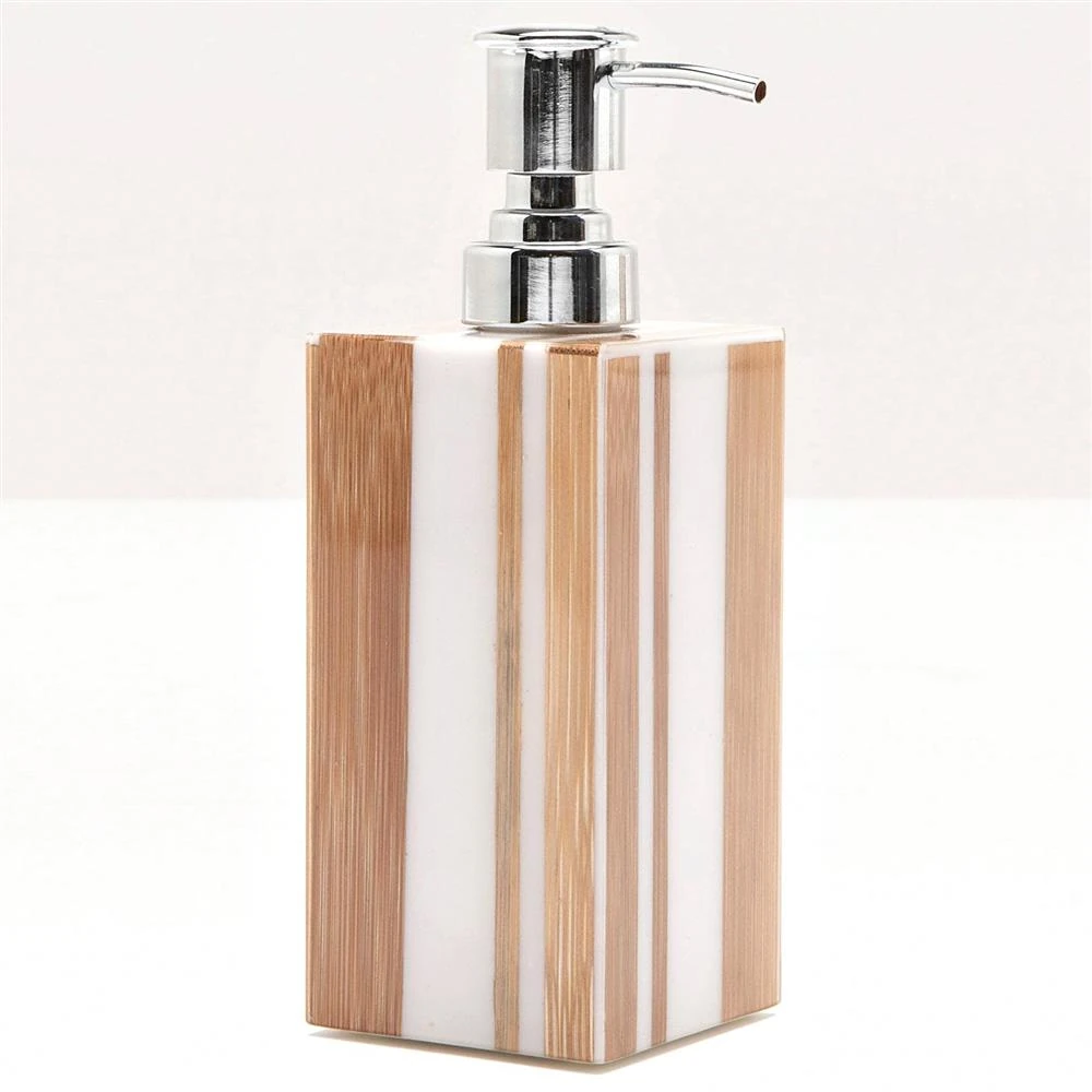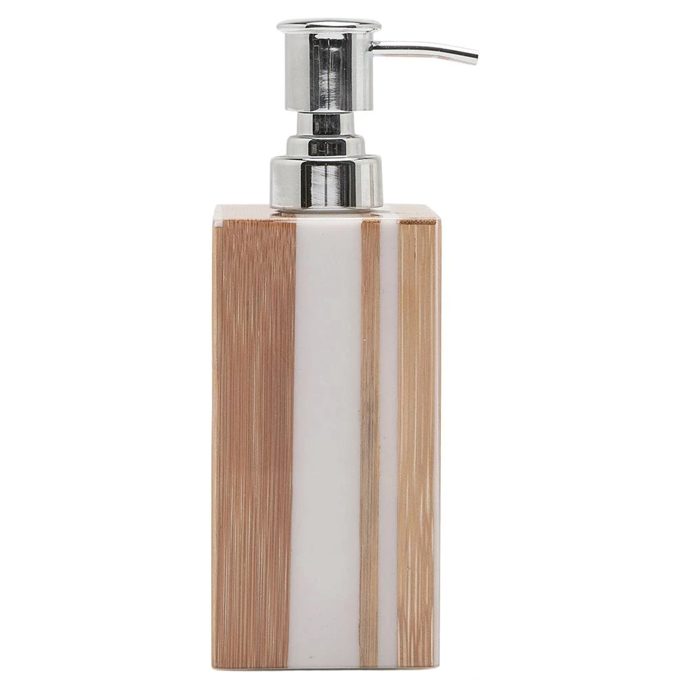 Pigeon and Poodle Ashford Mid Century Brown Bamboo White Striped Soap Pump