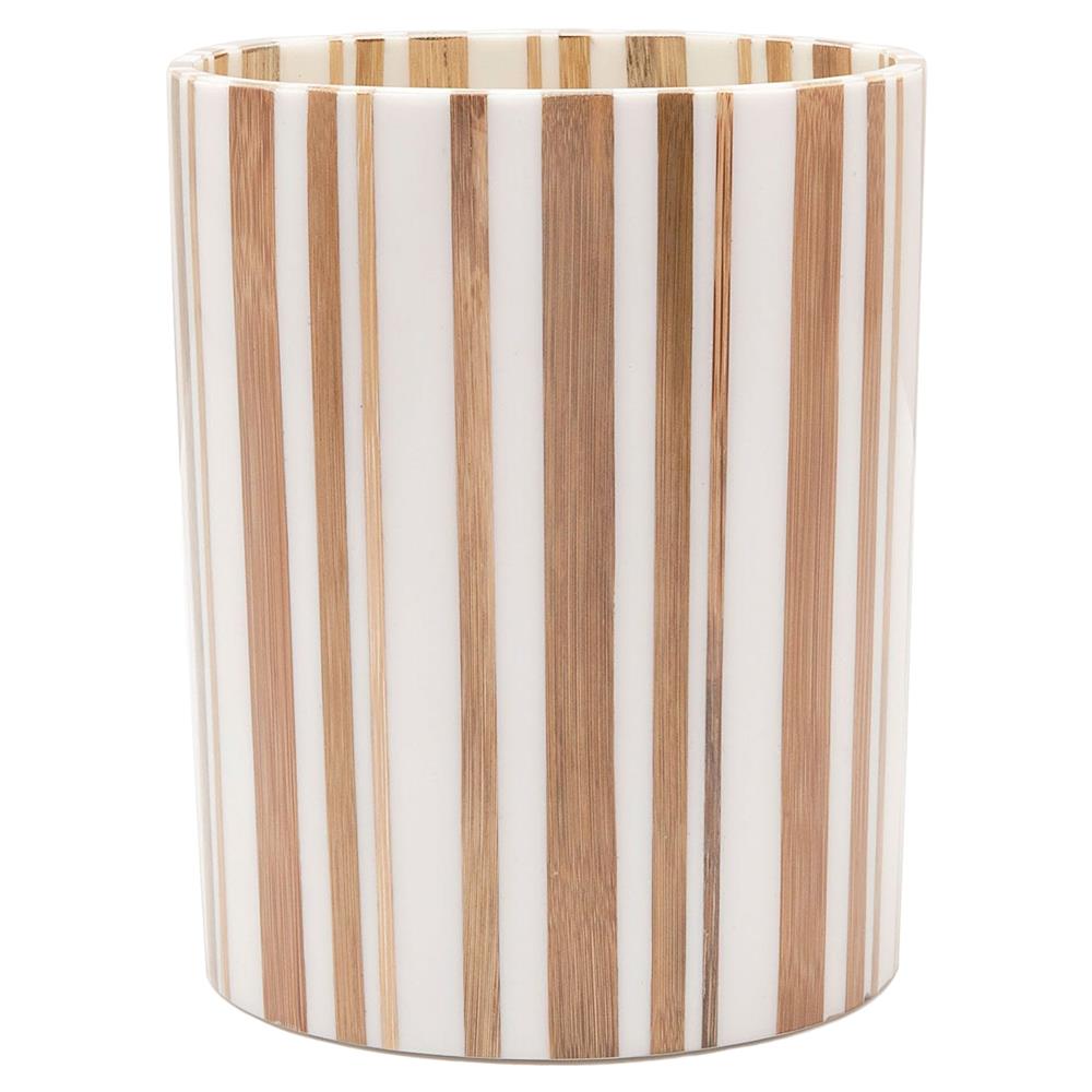 Pigeon and Poodle Ashford Mid Century Brown Bamboo White Striped Waste Basket