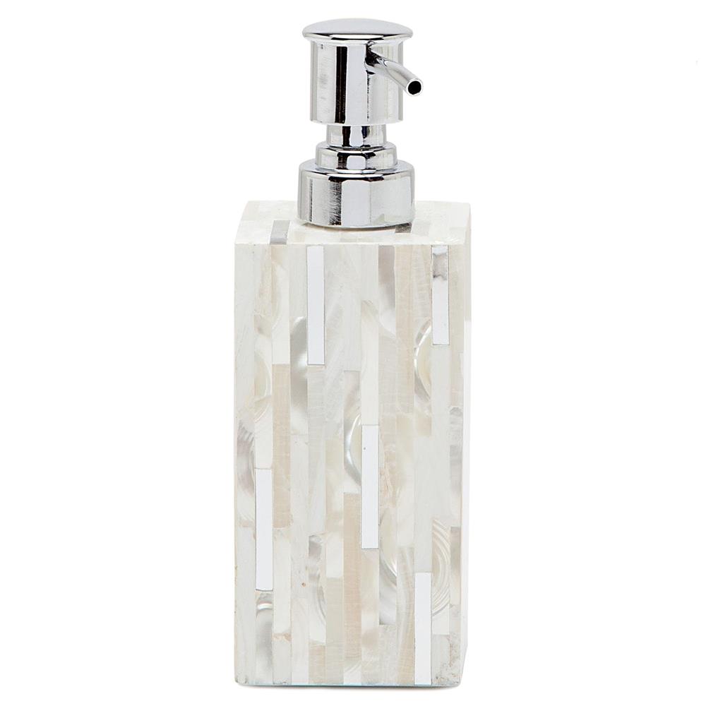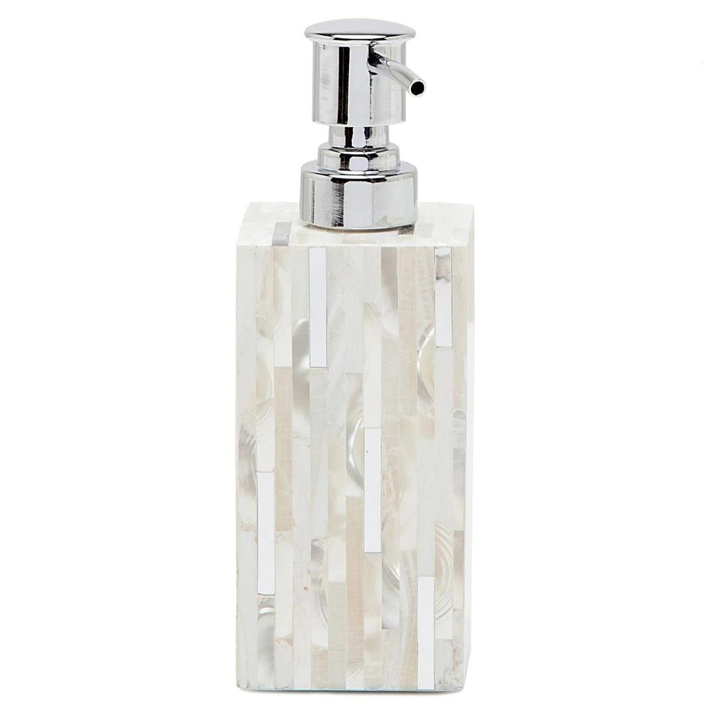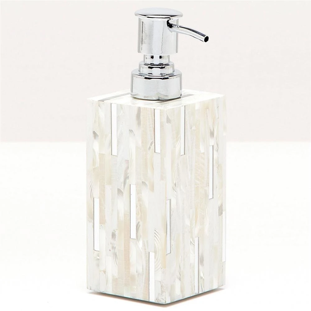 • Selene Coastal Beach Beige Travertine Marble Soap & Lotion Dispenser|Kathy Kuo Home