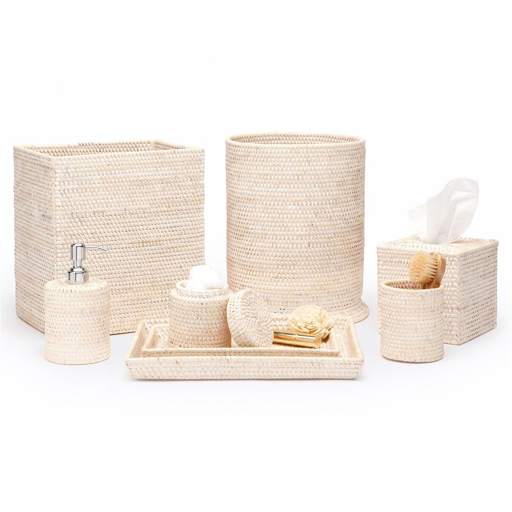 • Pigeon and Poodle Dalton Coastal Beach Whitewash Rattan Tissue Box|Kathy Kuo Home