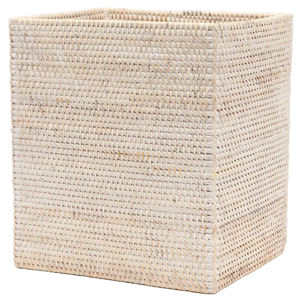 Pigeon and Poodle Dalton Coastal Beach Whitewash Rattan Rectangular Waste Basket