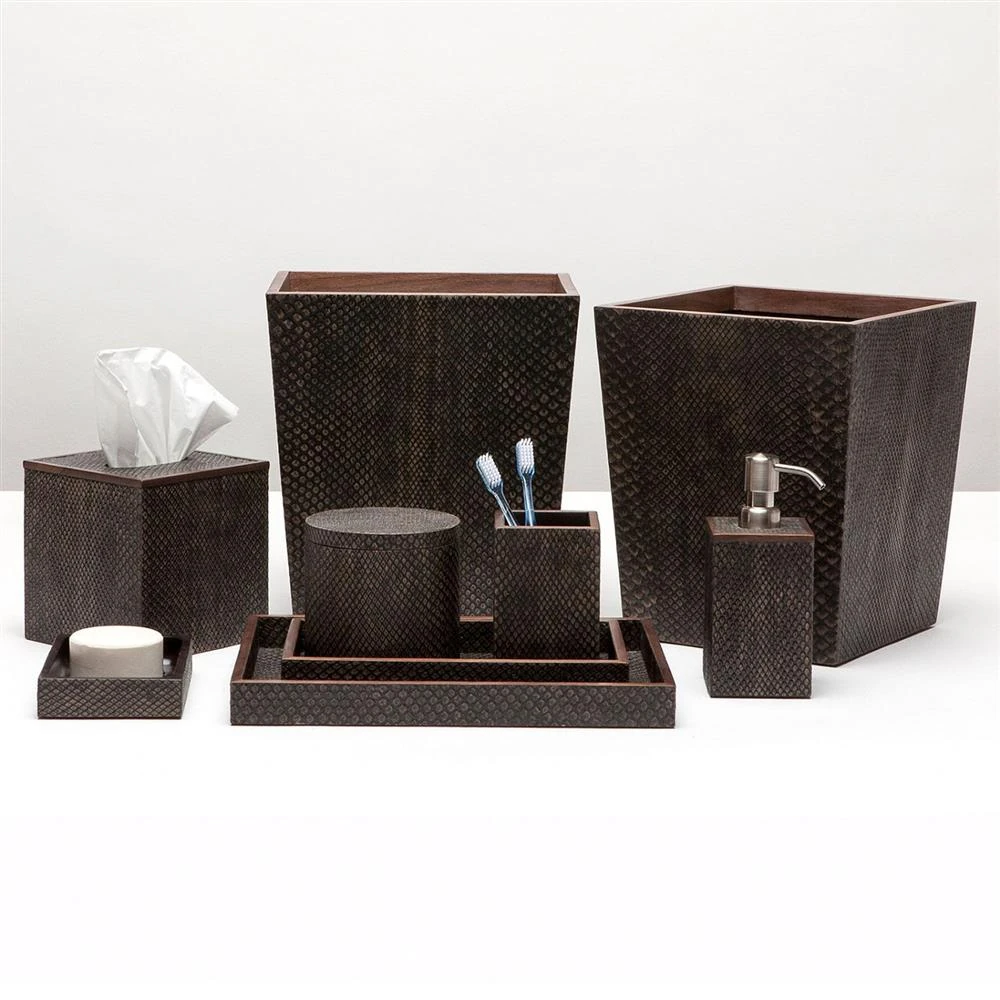 • Pigeon and Poodle Goa Rustic Lodge Dark Brown Faux Boa Waste Basket - Small|Kathy Kuo Home