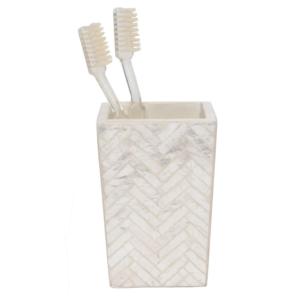 Pigeon and Poodle Handa Coastal Beige Herringbone Capiz Shell Brush Holder