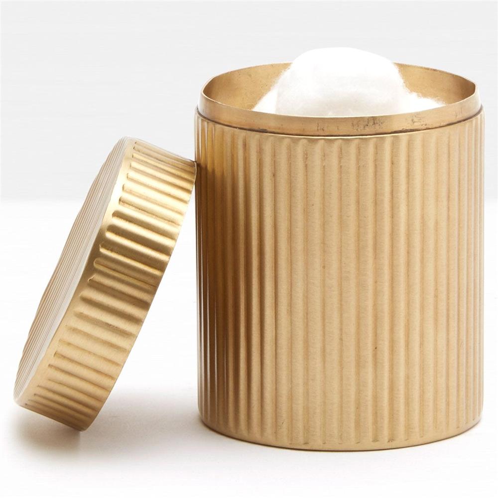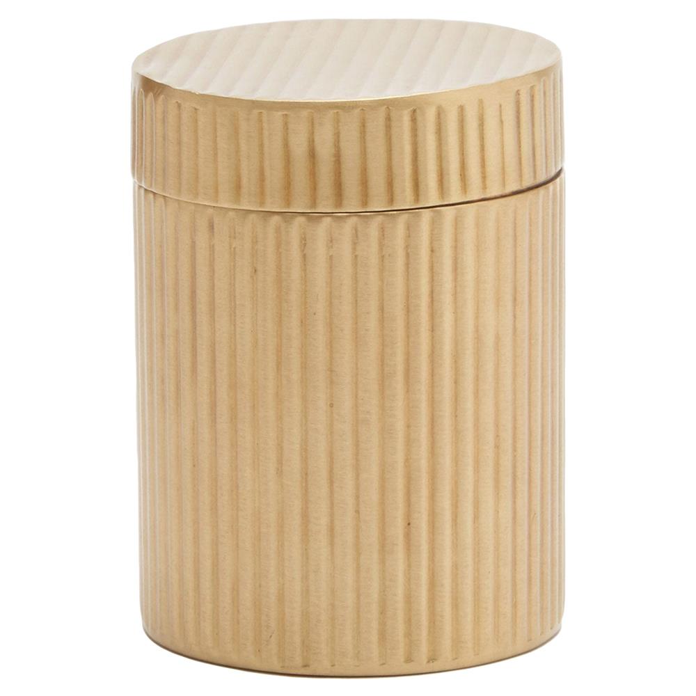 Pigeon and Poodle Redon Modern Antique Brass Ribbed Metal Canister - Small