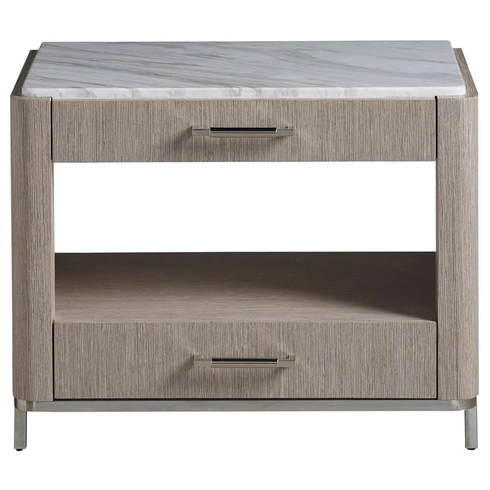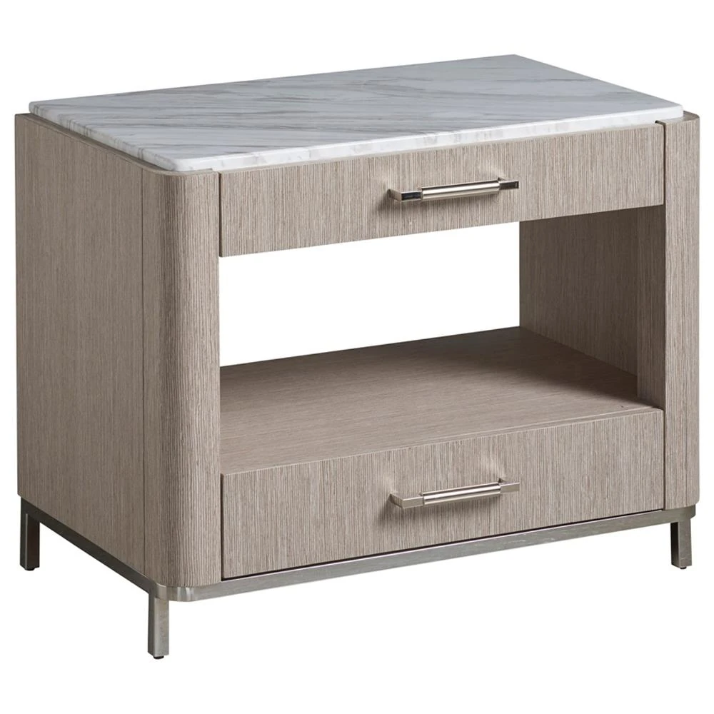 Luke Modern Classic White Stone Top Silver Metal Base 2 Drawer Nightstand