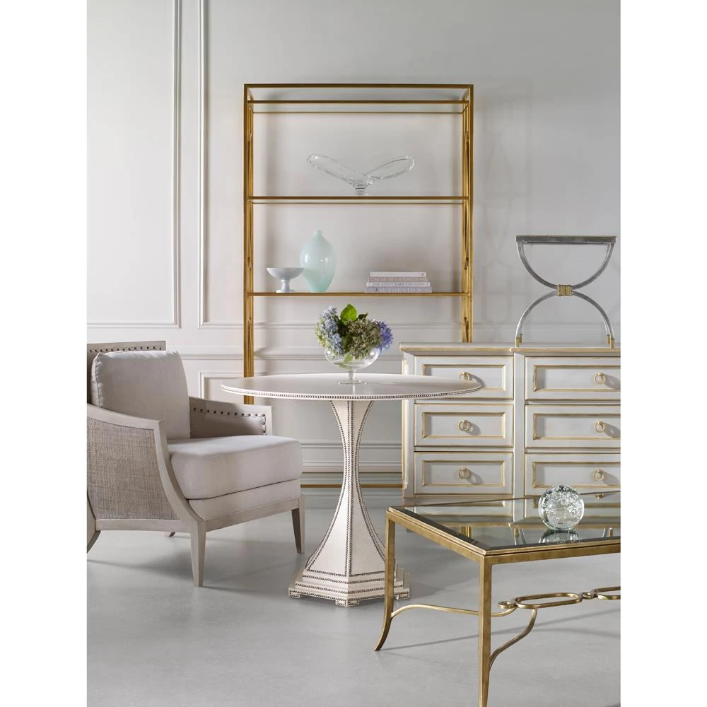 Century Madeline French Light Grey Wood Gold Leaf Dining Arm Chair