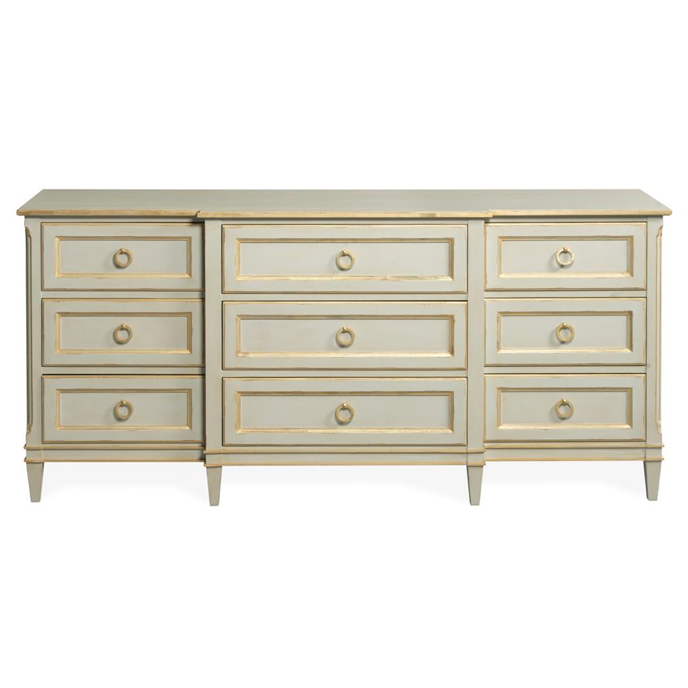 Century Madeline French Country Antique Grey Wood Gold Leaf Accent 9 Drawer Dresser
