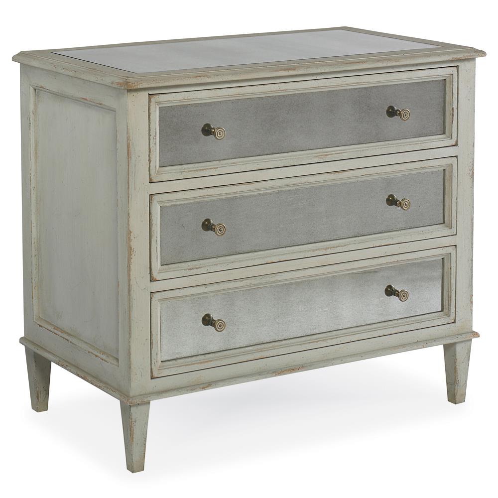 Century Madeline French Grey Acacia Wood Silver Eglomise Mirror 3 Drawer Nightstand