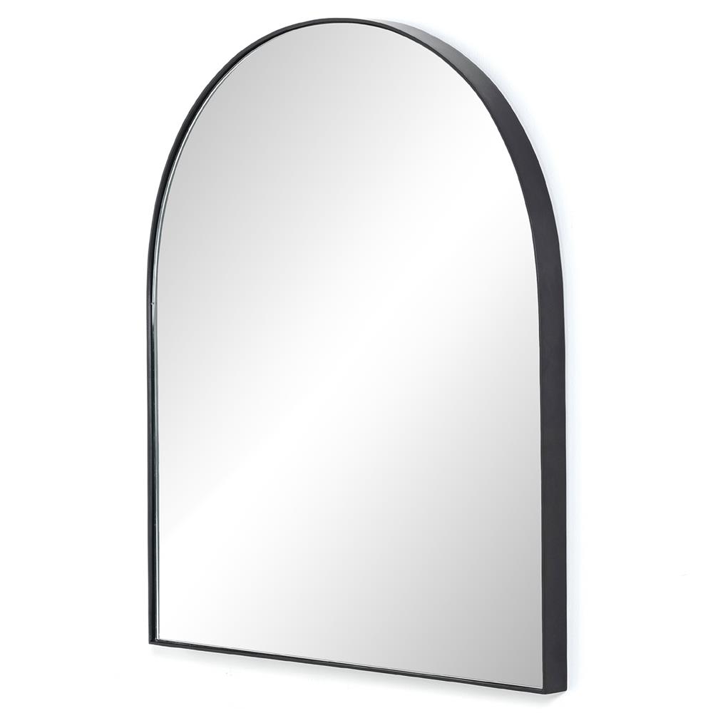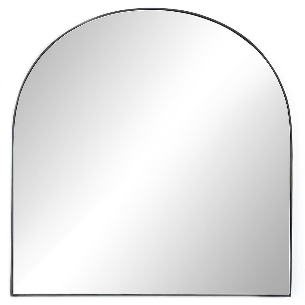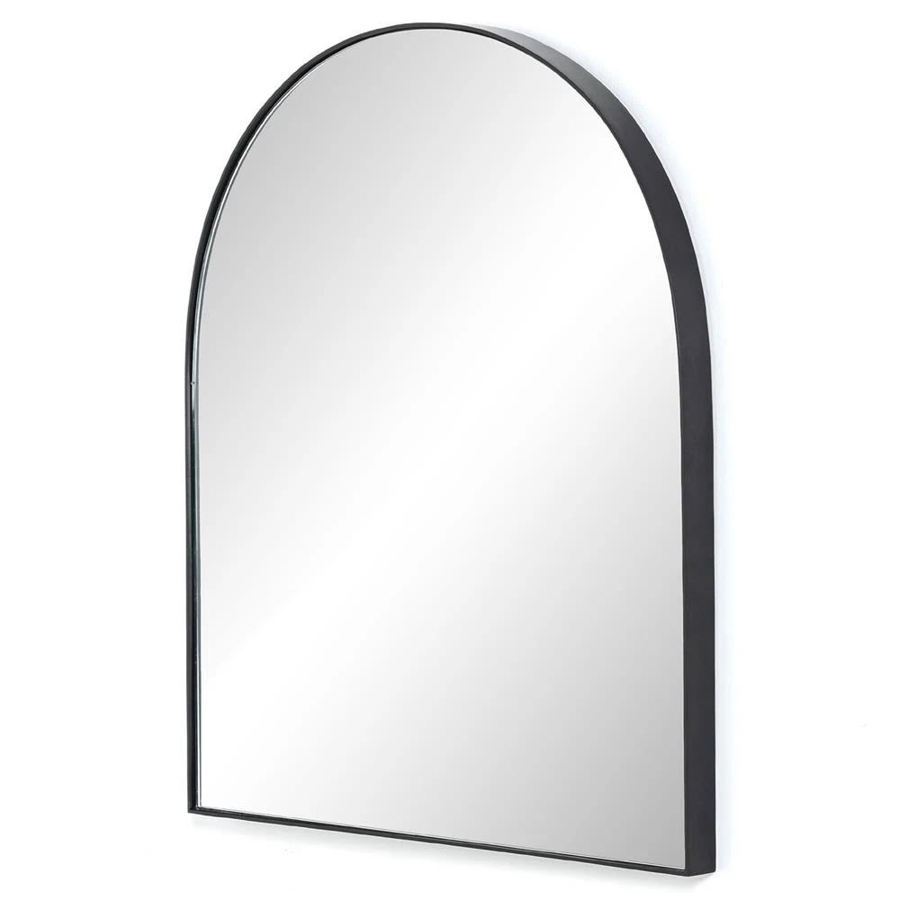 Rinna Industrial Loft Black Iron Frame Clear Glass Arched Wide Wall Mirror