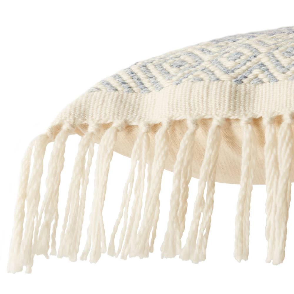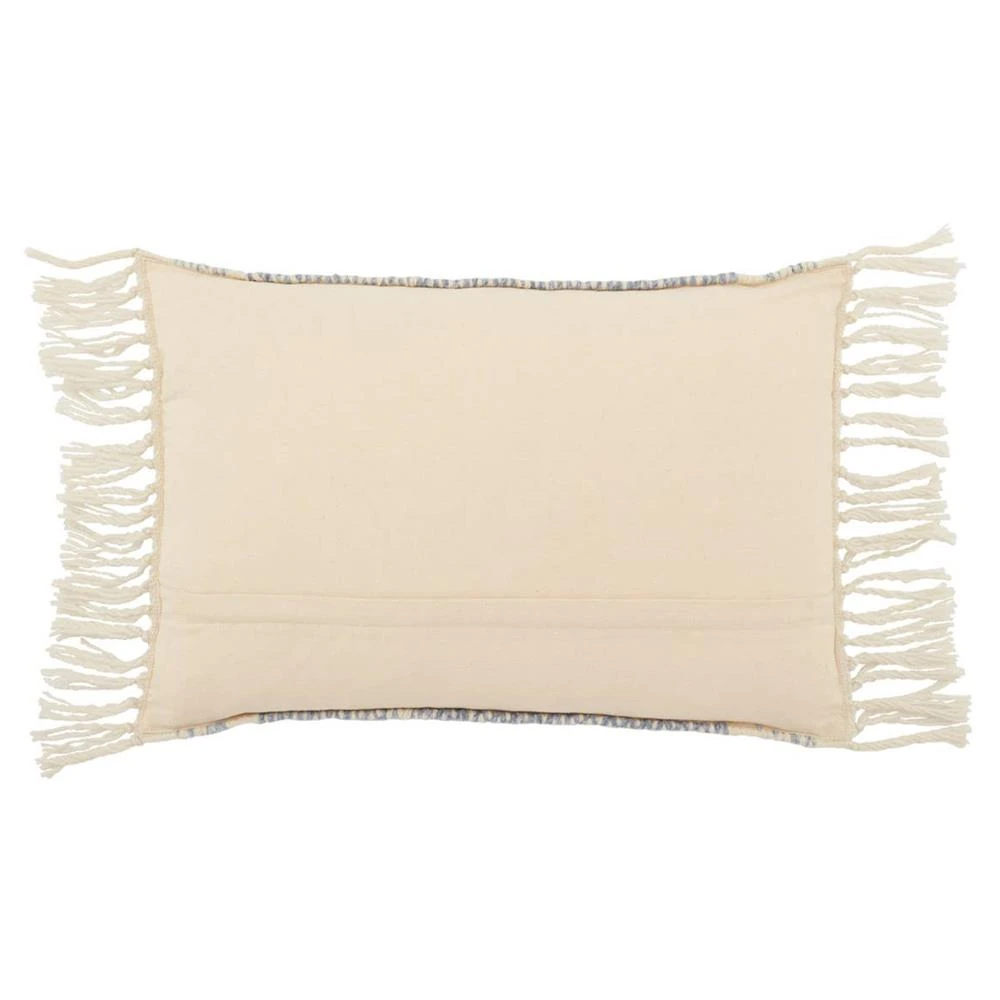 The Iker lumbar pillow features a clever mix of patterns in blue and ivory hues, with tasseled trim accents along two edges. This durab ... more