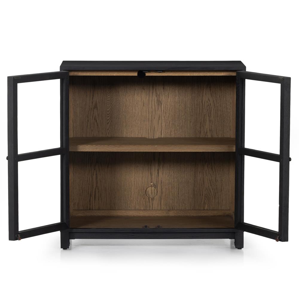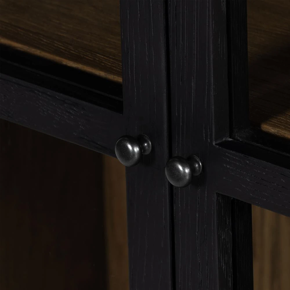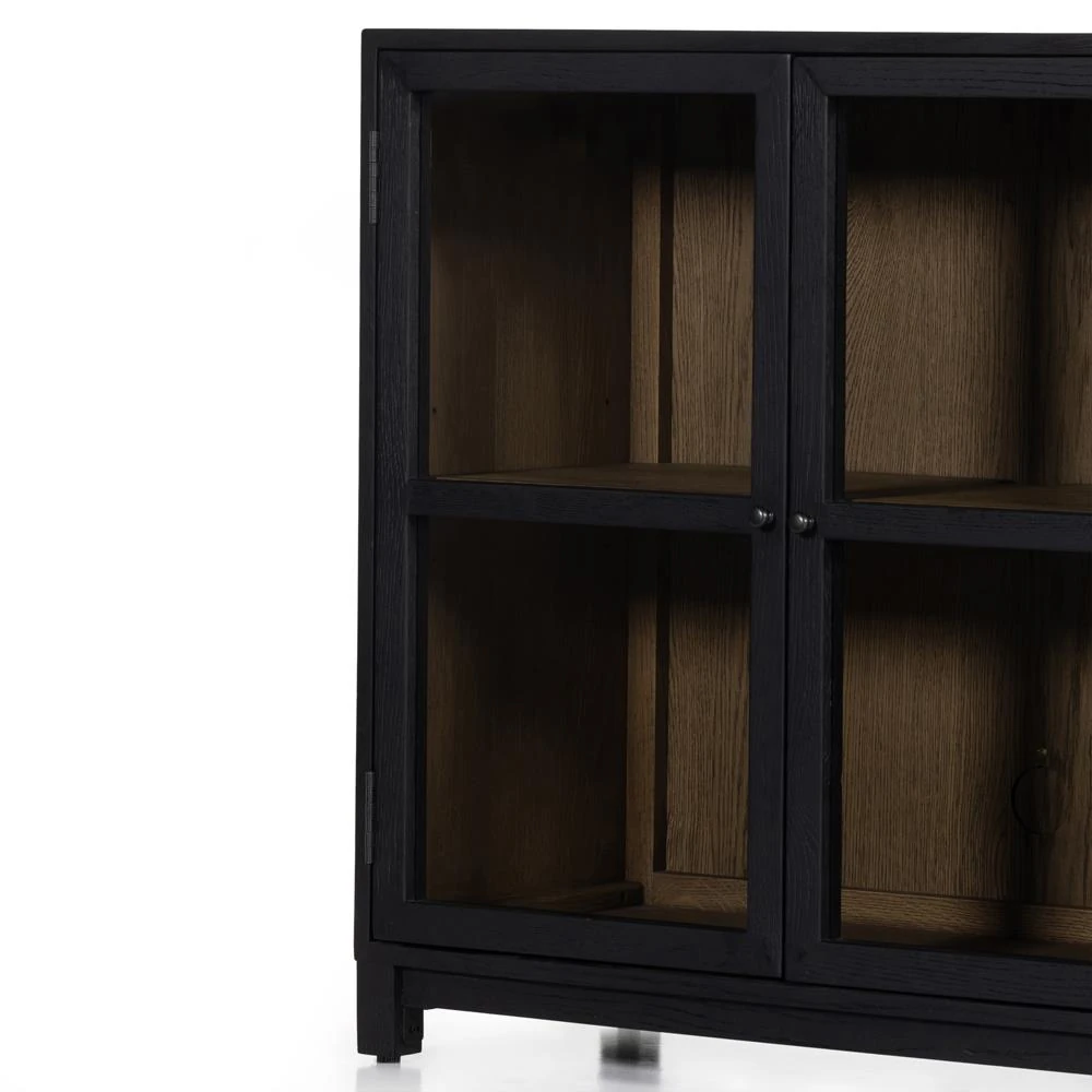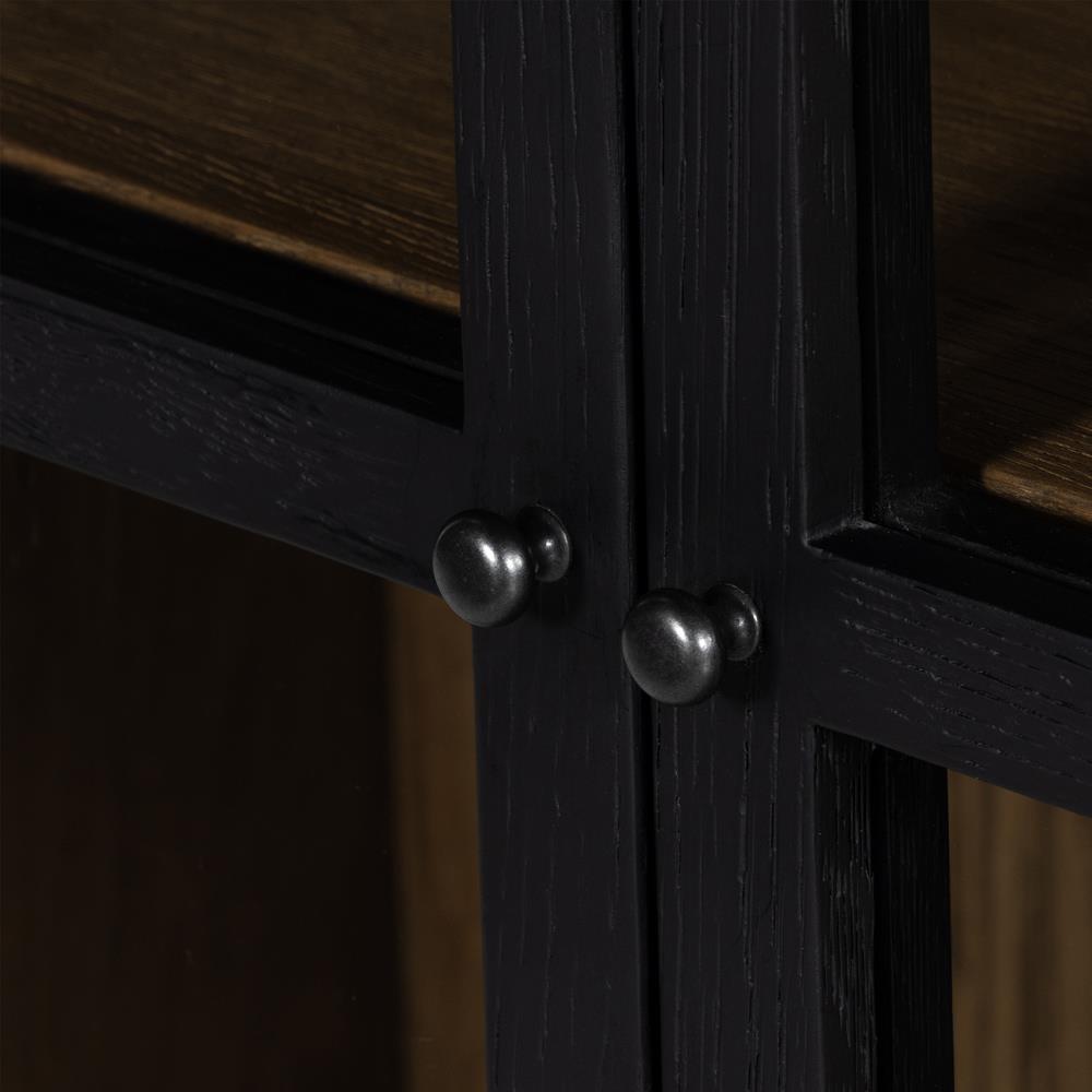 • Features a black drifted oak frames lighter interior shelving for subtle but striking contrast
