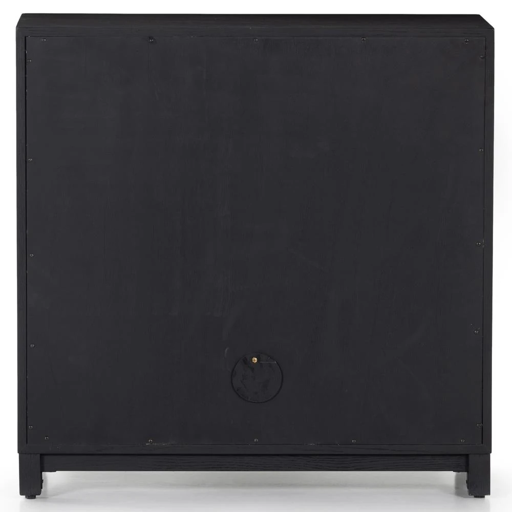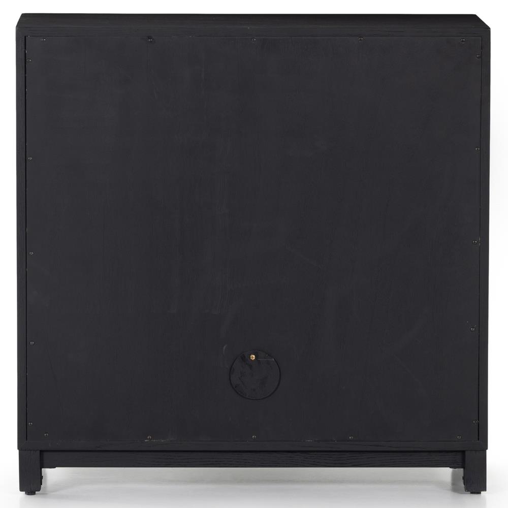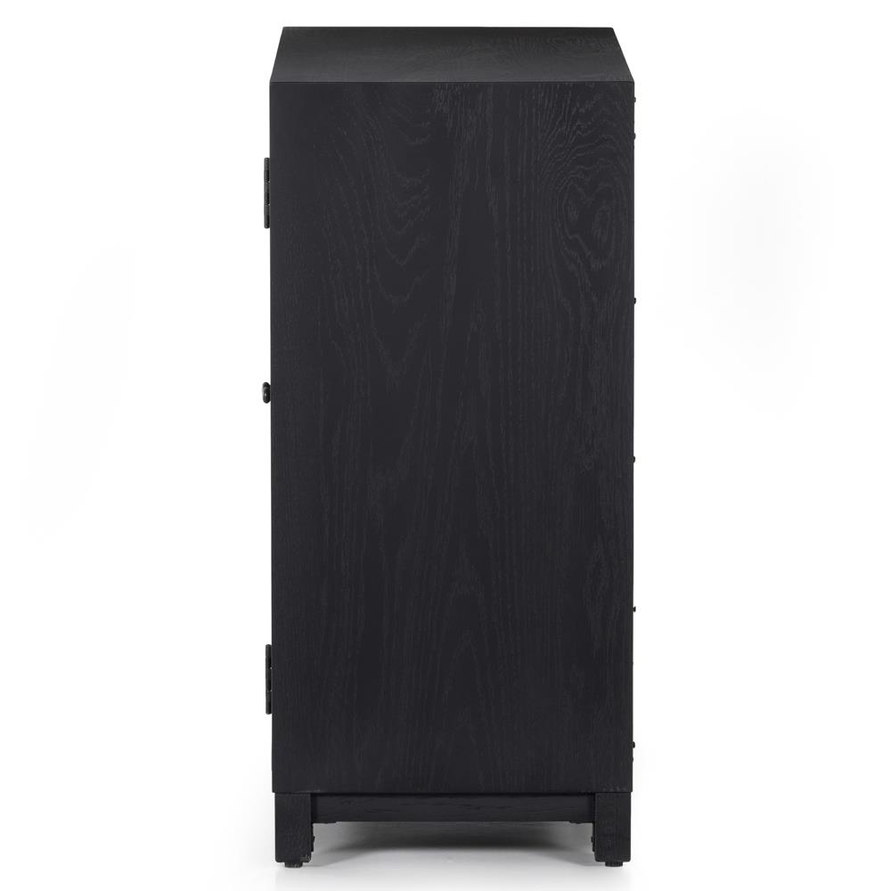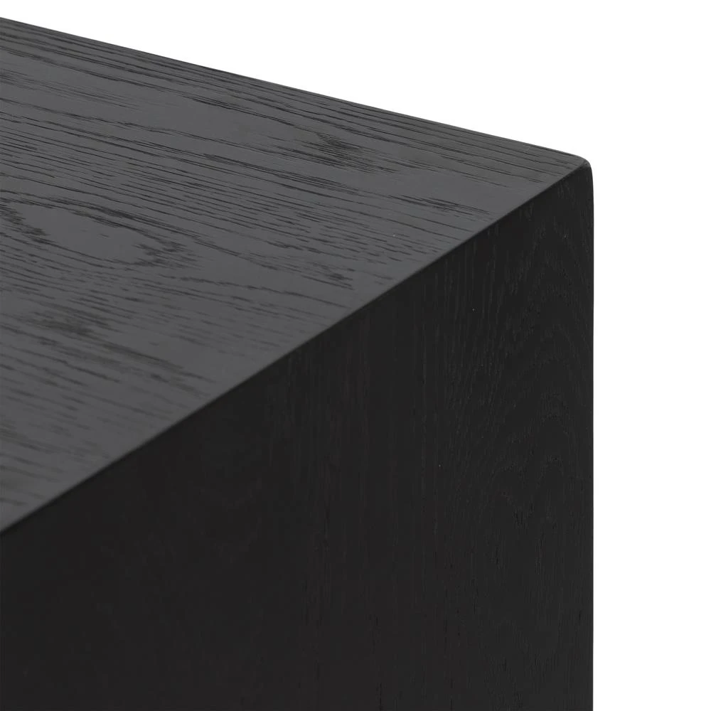 • Features a black drifted oak frames lighter interior shelving for subtle but striking contrast