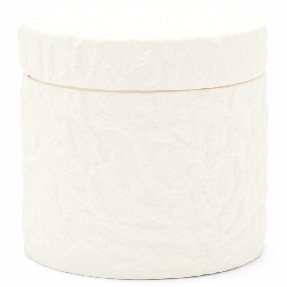 • AERIN Josepha French Country White Ceramic Floral Canister - Small|Kathy Kuo Home
