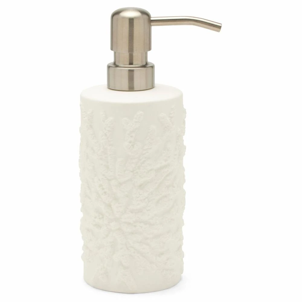 • Selene Coastal Beach Beige Travertine Marble Soap & Lotion Dispenser|Kathy Kuo Home