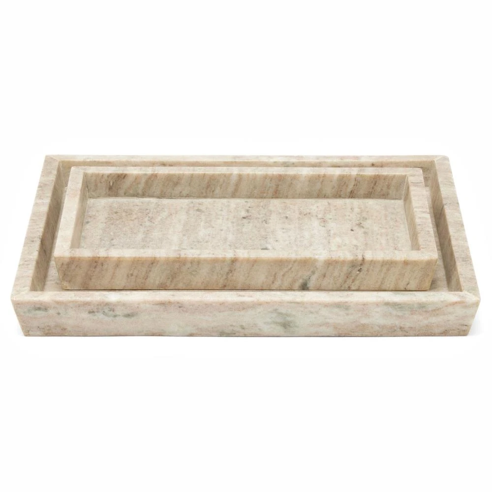 Pigeon and Poodle Athlone Modern Classic Beige Marble Tapered Tray - Set of 2|Kathy Kuo Home