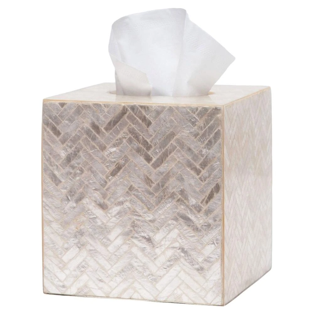 Pigeon and Poodle Handa Coastal Beige Herringbone Capiz Shell Tissue Box