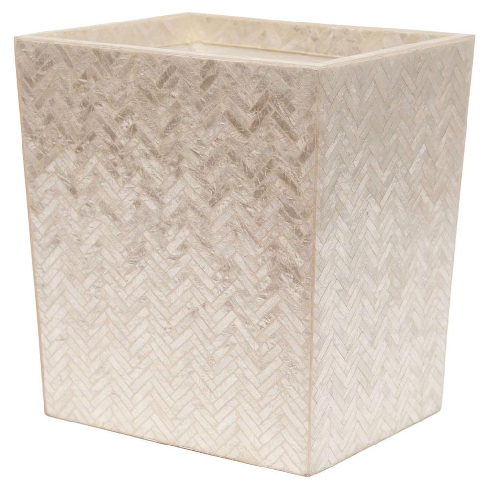 Pigeon and Poodle Handa Beige Herringbone Capiz Shell Waste Basket - Small