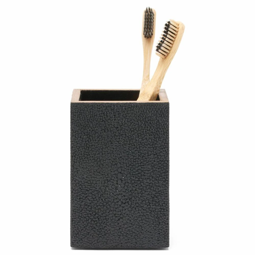 Pigeon and Poodle Manchester Modern Black Faux Shagreen Brush Holder