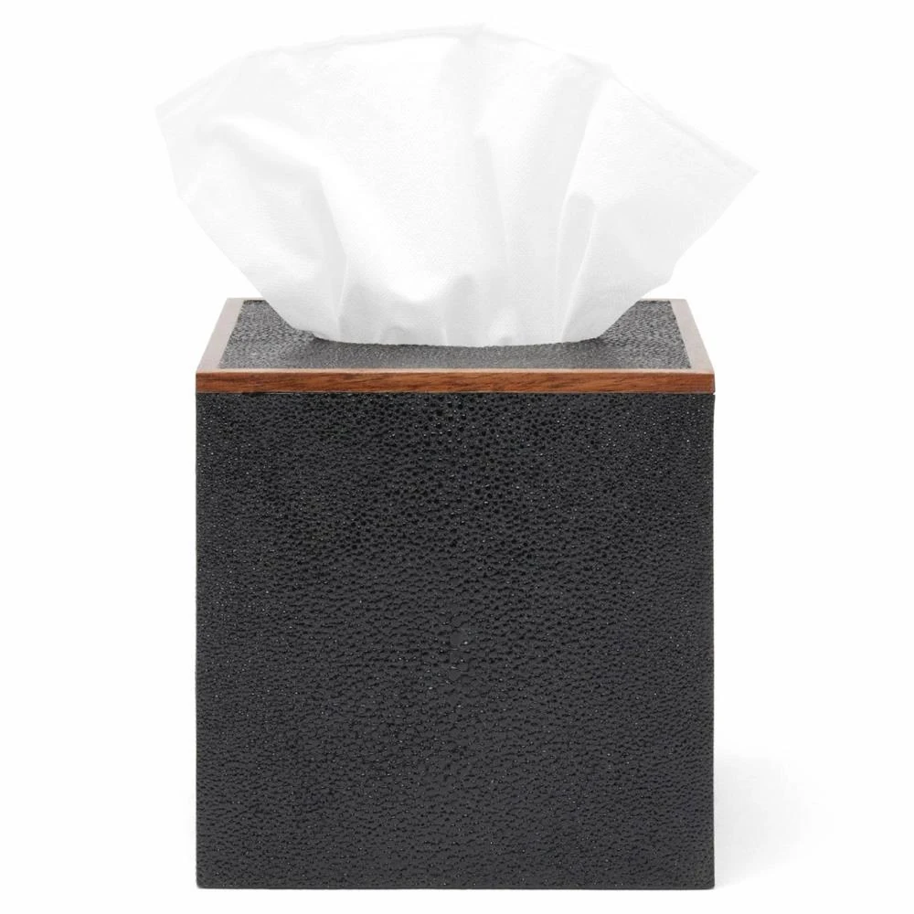 Pigeon and Poodle Manchester Modern Black Faux Shagreen Tissue Box - Small