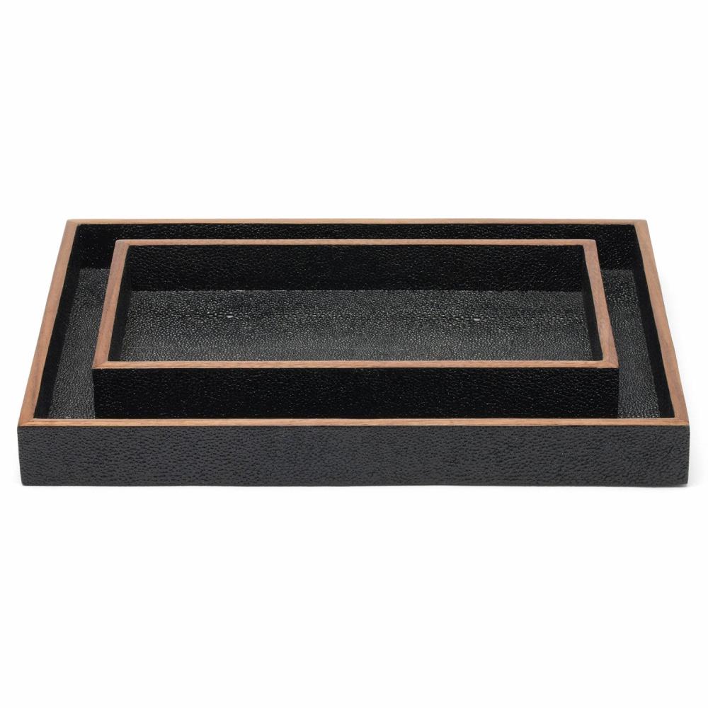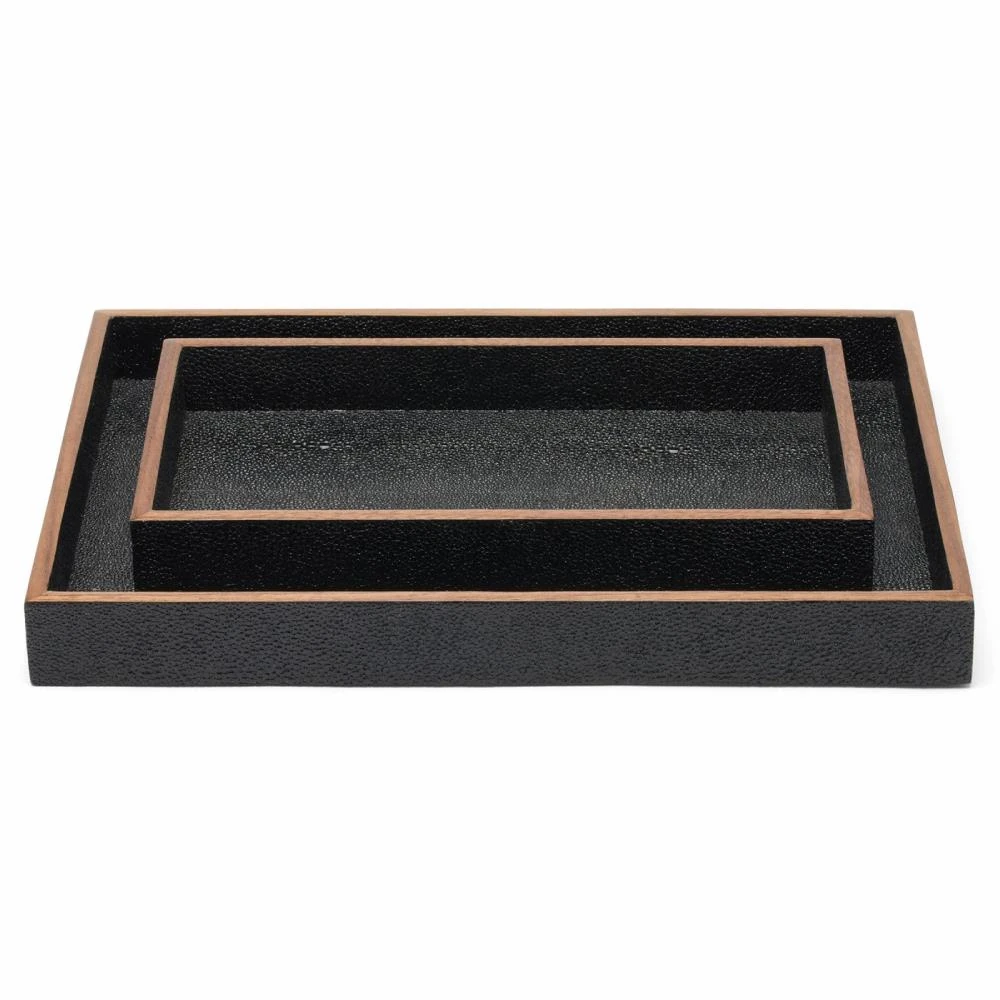 Pigeon and Poodle Manchester Modern Black Faux Shagreen Tray - Set of 2|Kathy Kuo Home