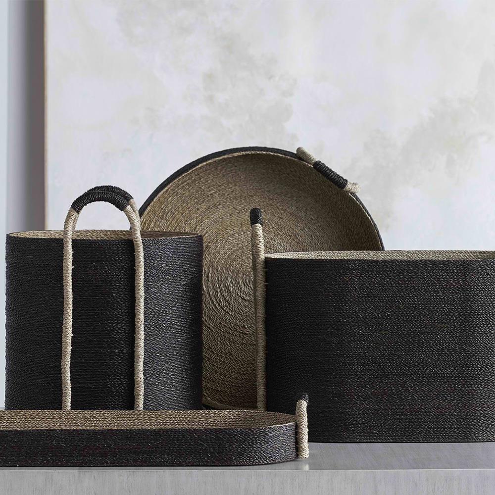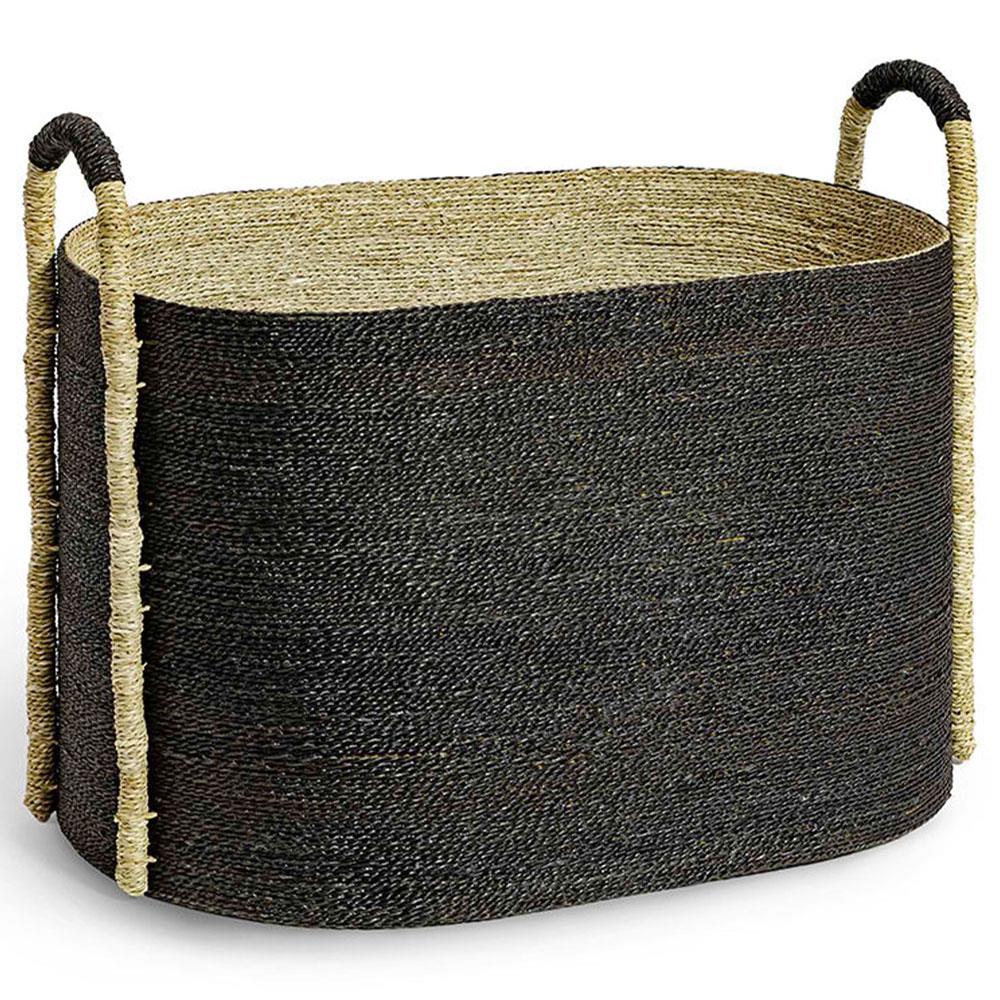 Palecek Mckinley Coastal Beach Black Hand-woven Seagrass Oval Decorative Basket