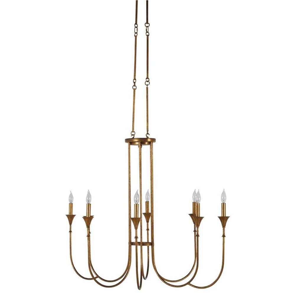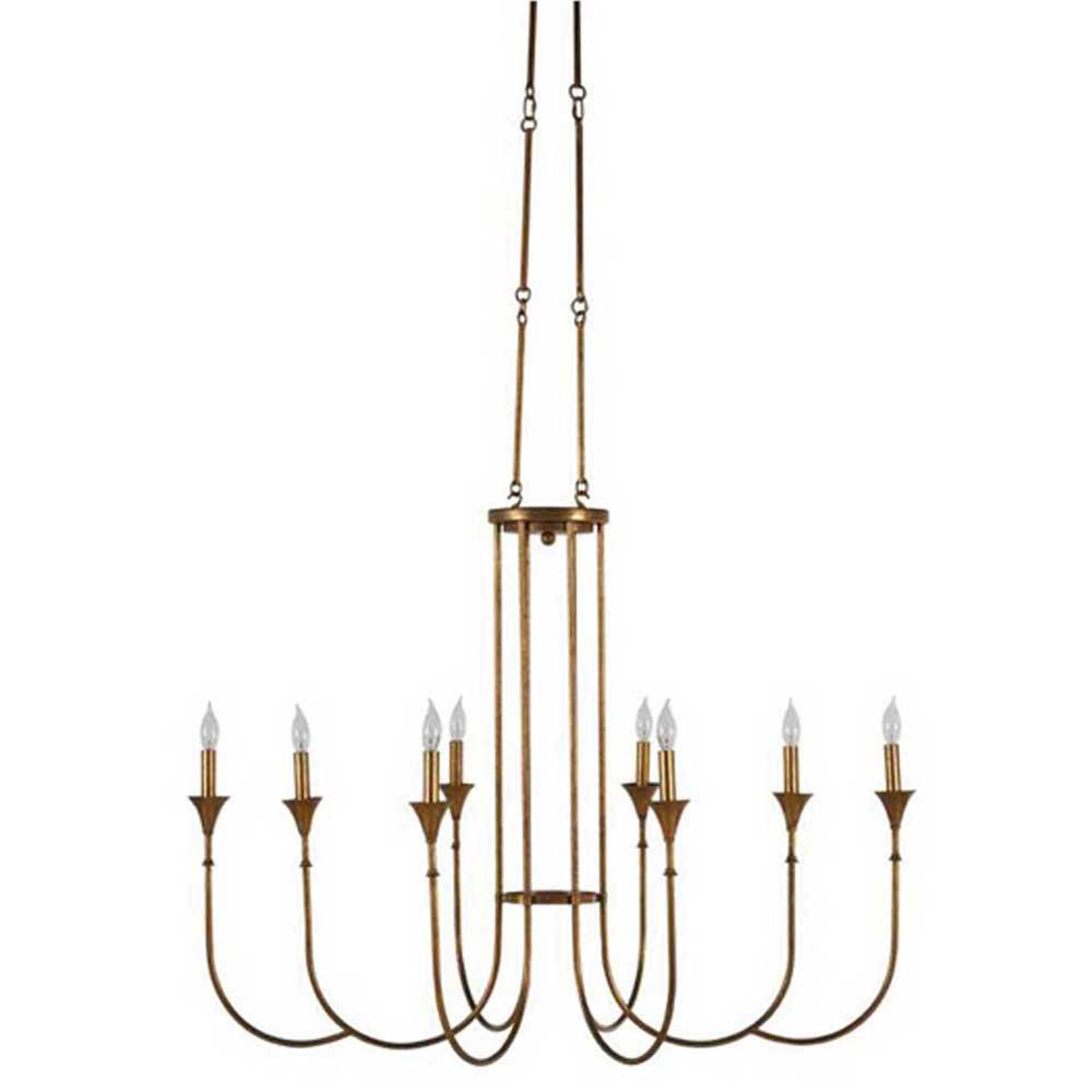 • Clay French Distressed Vintage Gold Iron Column Chandelier - Large|Kathy Kuo Home