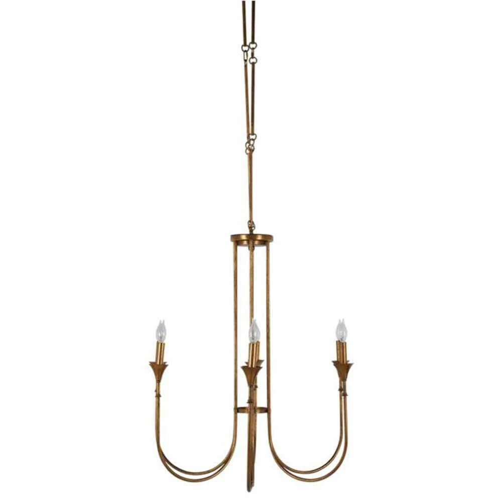 Clay French Distressed Vintage Gold Iron Column Chandelier - Large