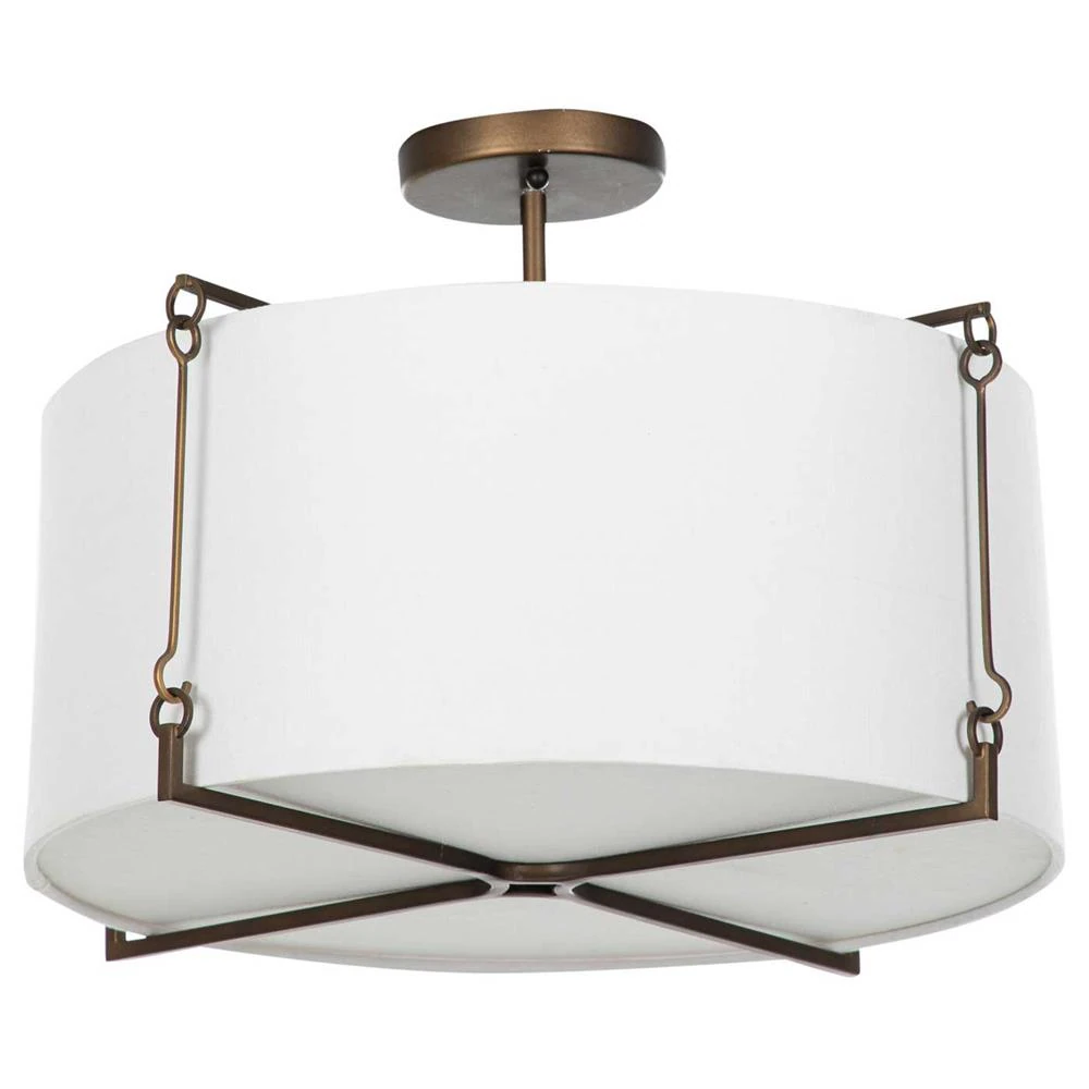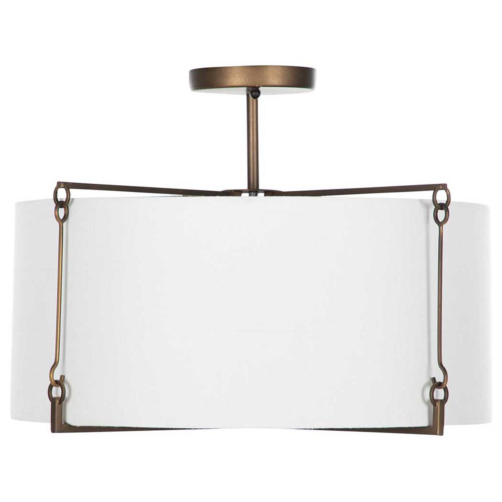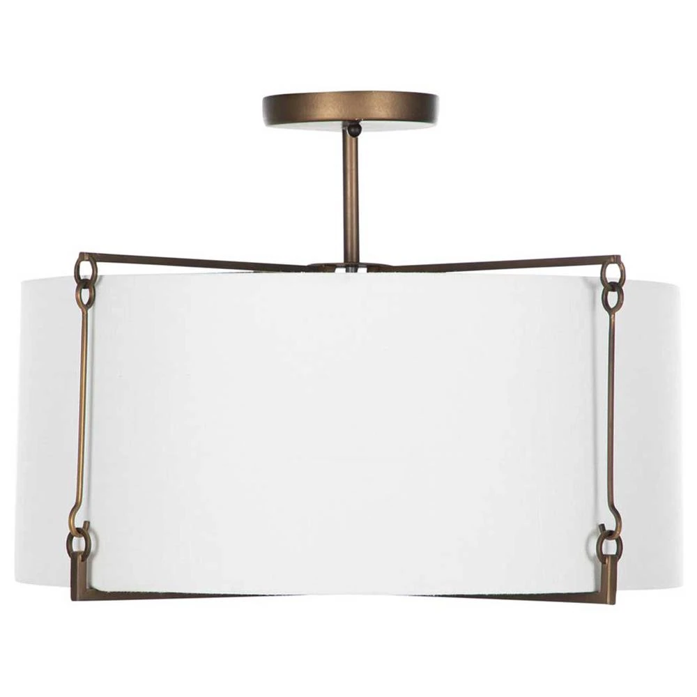 Theresa French Country Bronze Metal White Linen Semi Flush Mount