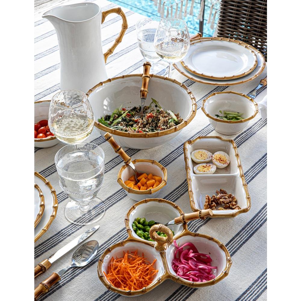Juliska Natural Bamboo Rim White Ceramic Triple Cocktail Serving Bowl