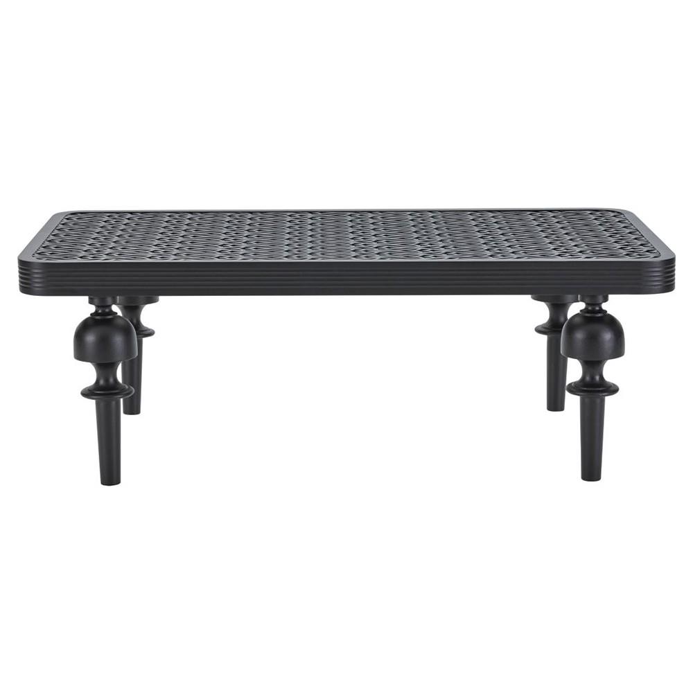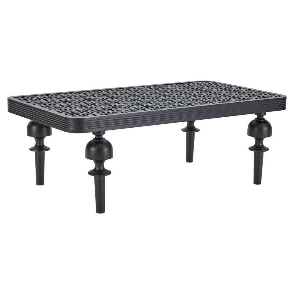 Hermine French Country Black Patterned Aluminum Outdoor Rectangular Coffee Table