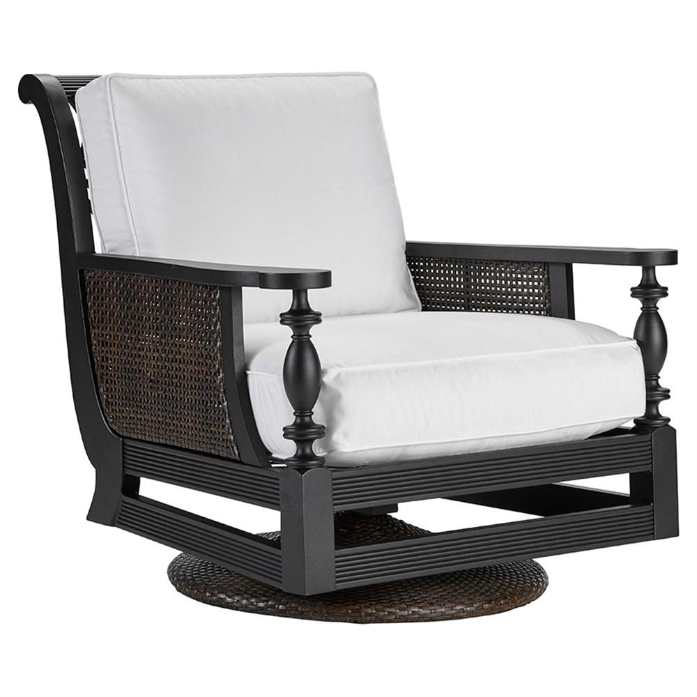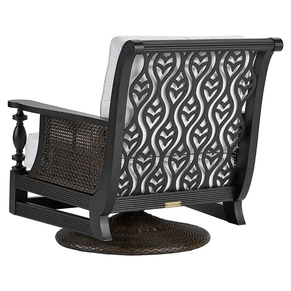 Hermine French Country Black Aluminum White Upholstered Outdoor Swivel Chair