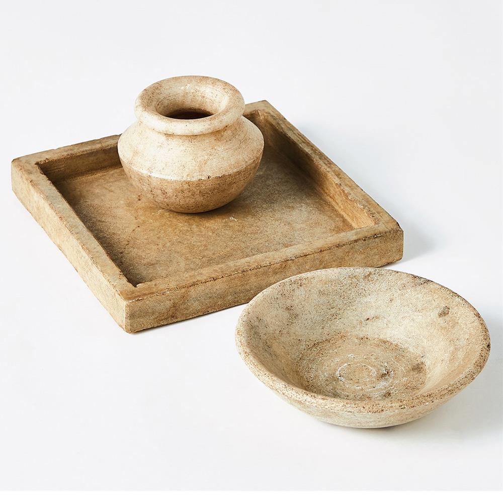• Allegra French Country Antique White Marble Round Decorative Bowl|Kathy Kuo Home